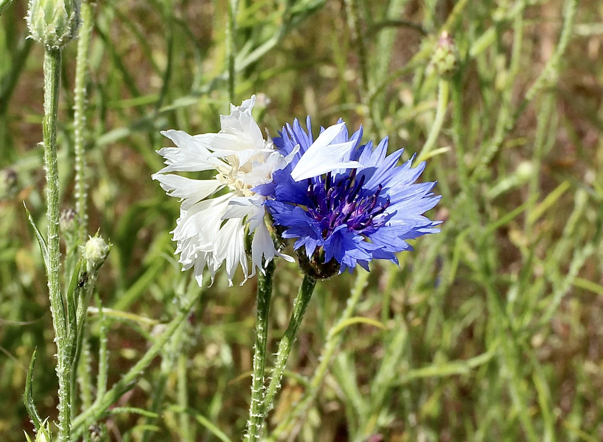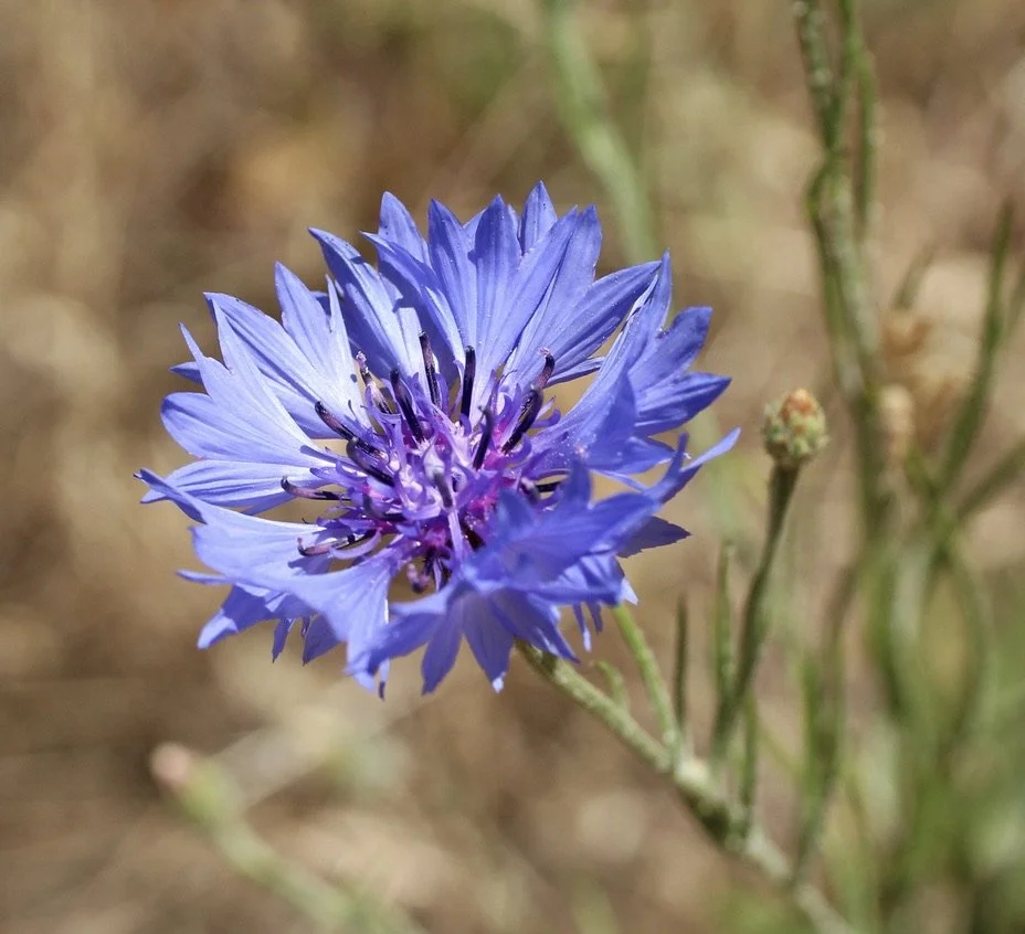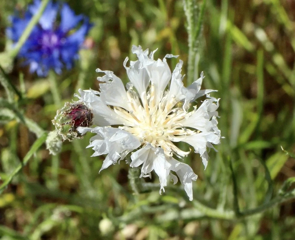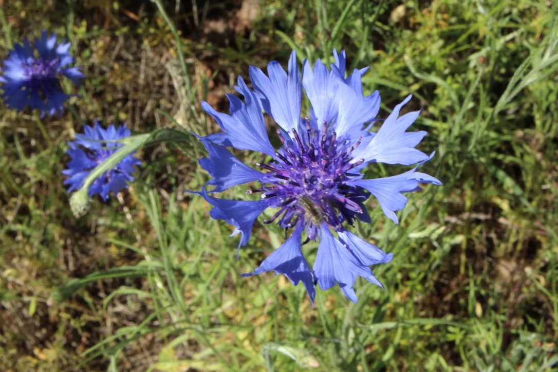 In late spring these very blue wildflowers emerge, sometimes covering the fields. These are a member of the very large Aster family of wildflowers. While usually blue, occasionally the flowers will be white or purple. This is not a native to this area.