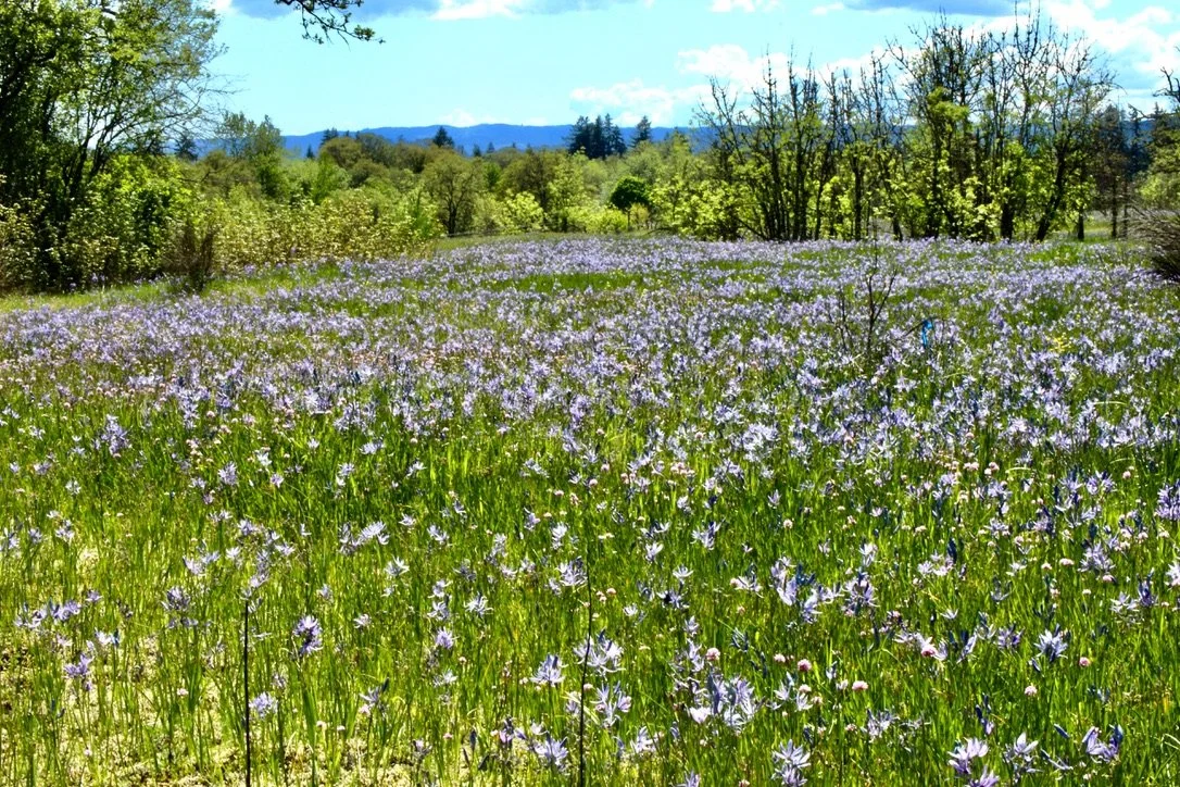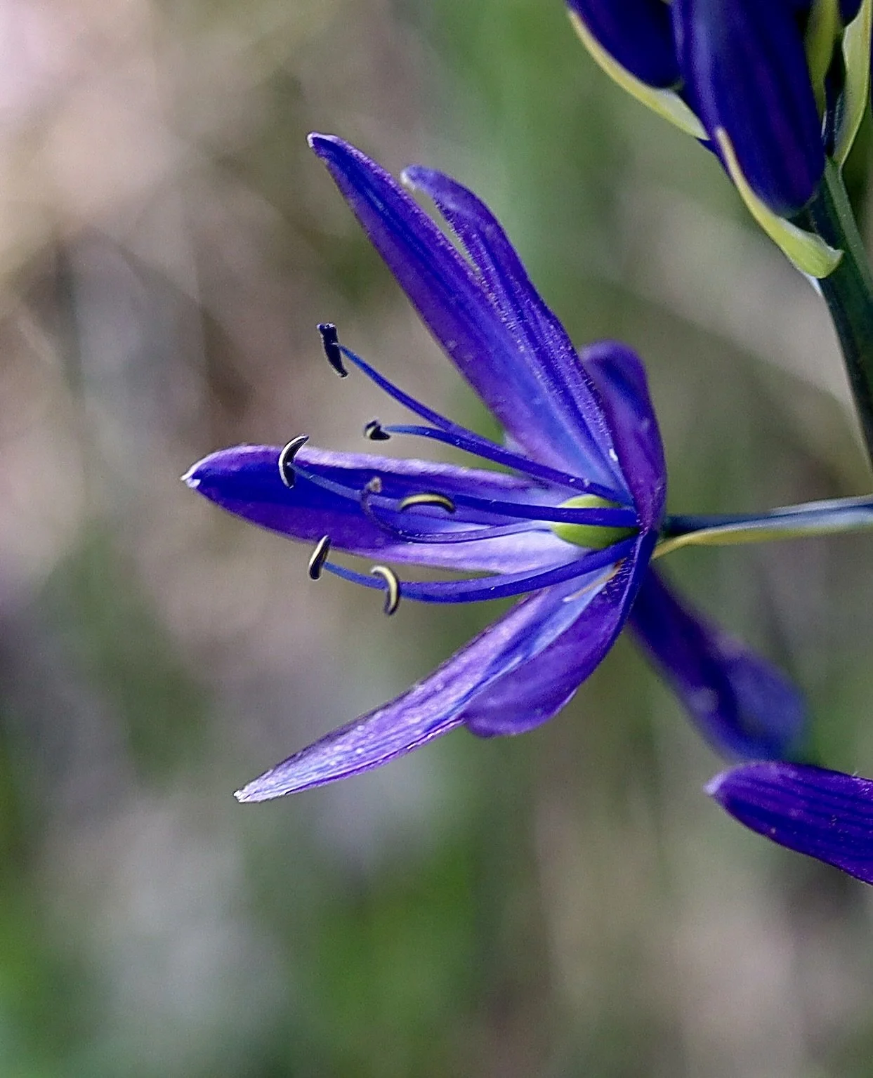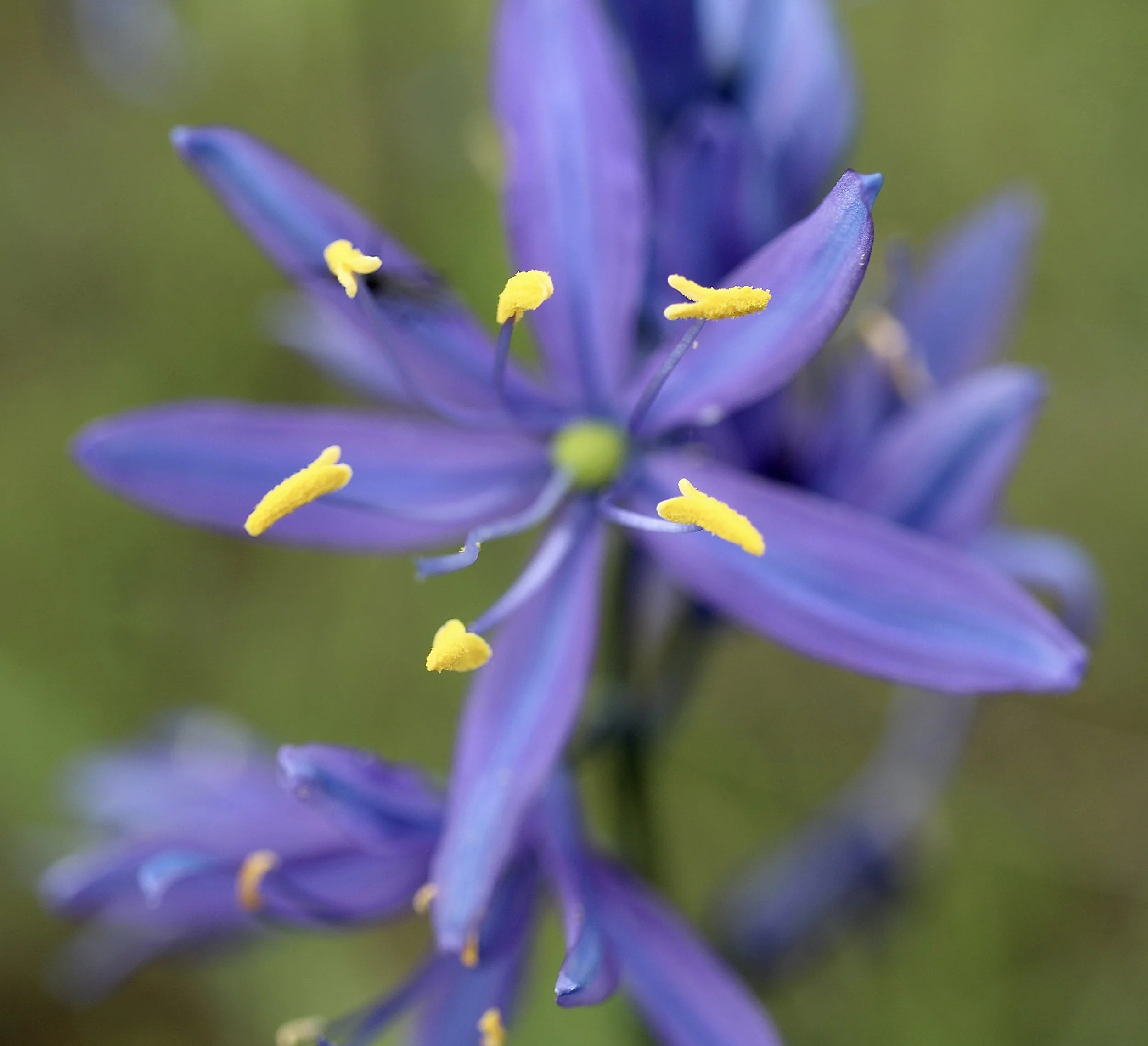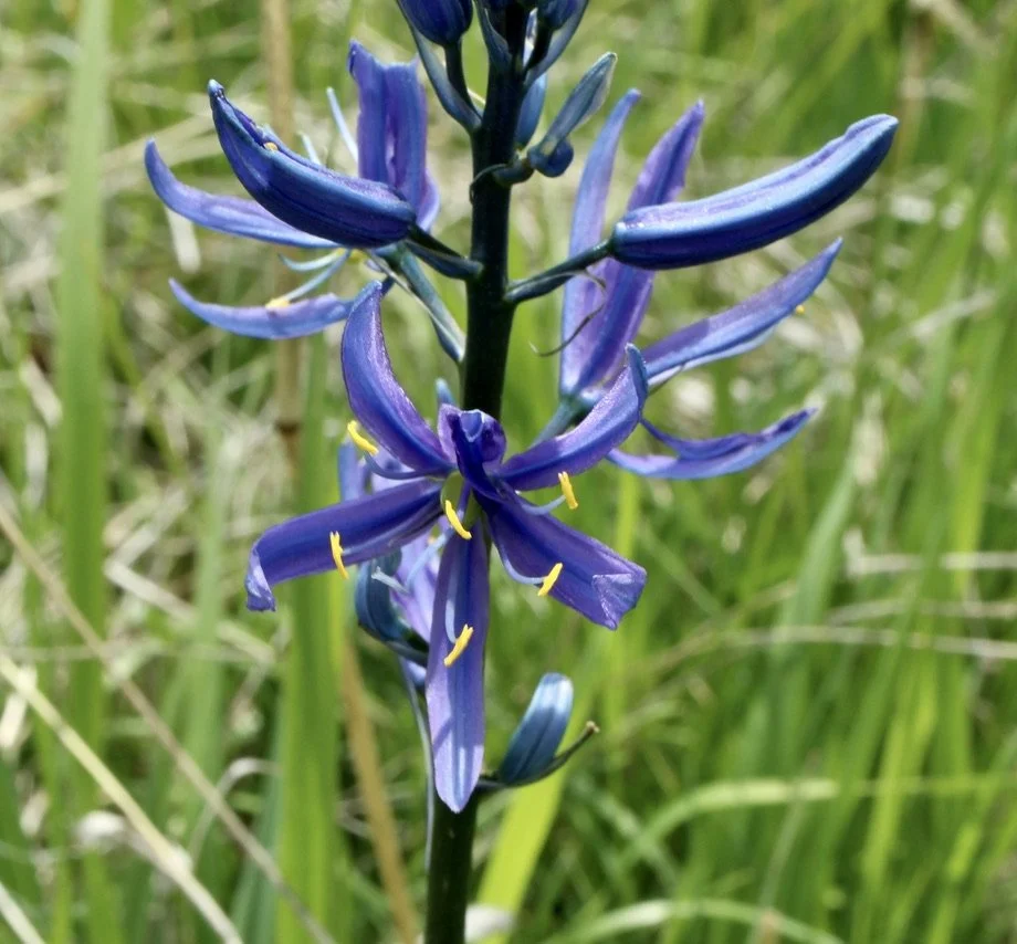 There are still large fields of Blue Camas growing in the Northwest. Many of these large meadows have been replaced by urban growth or agriculture, I have been luck enough to find some great areas filled with these common camas. The bulbs were a vital food source for the Native tribes of our Northwest and they battled the settlers coming west over access to the fields. There are the common blue (or small) camas, the great camas and the mountain death camas. While the great and the common look very similar except for the size, the mountain death camas is white and the bulbs are quite poisonous.