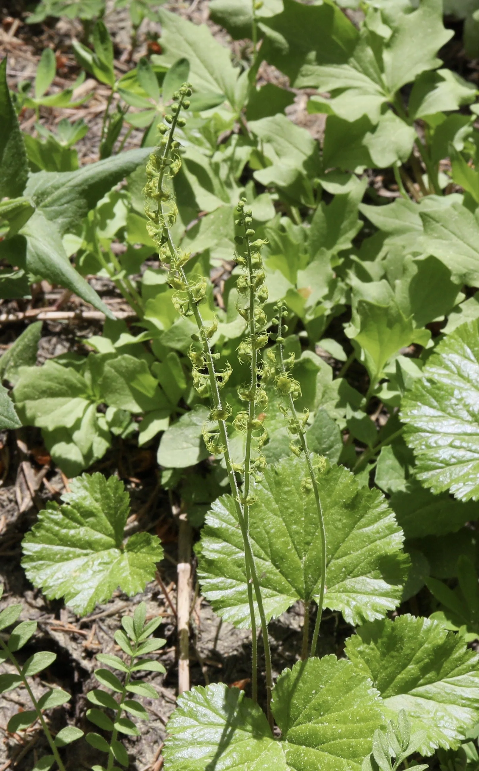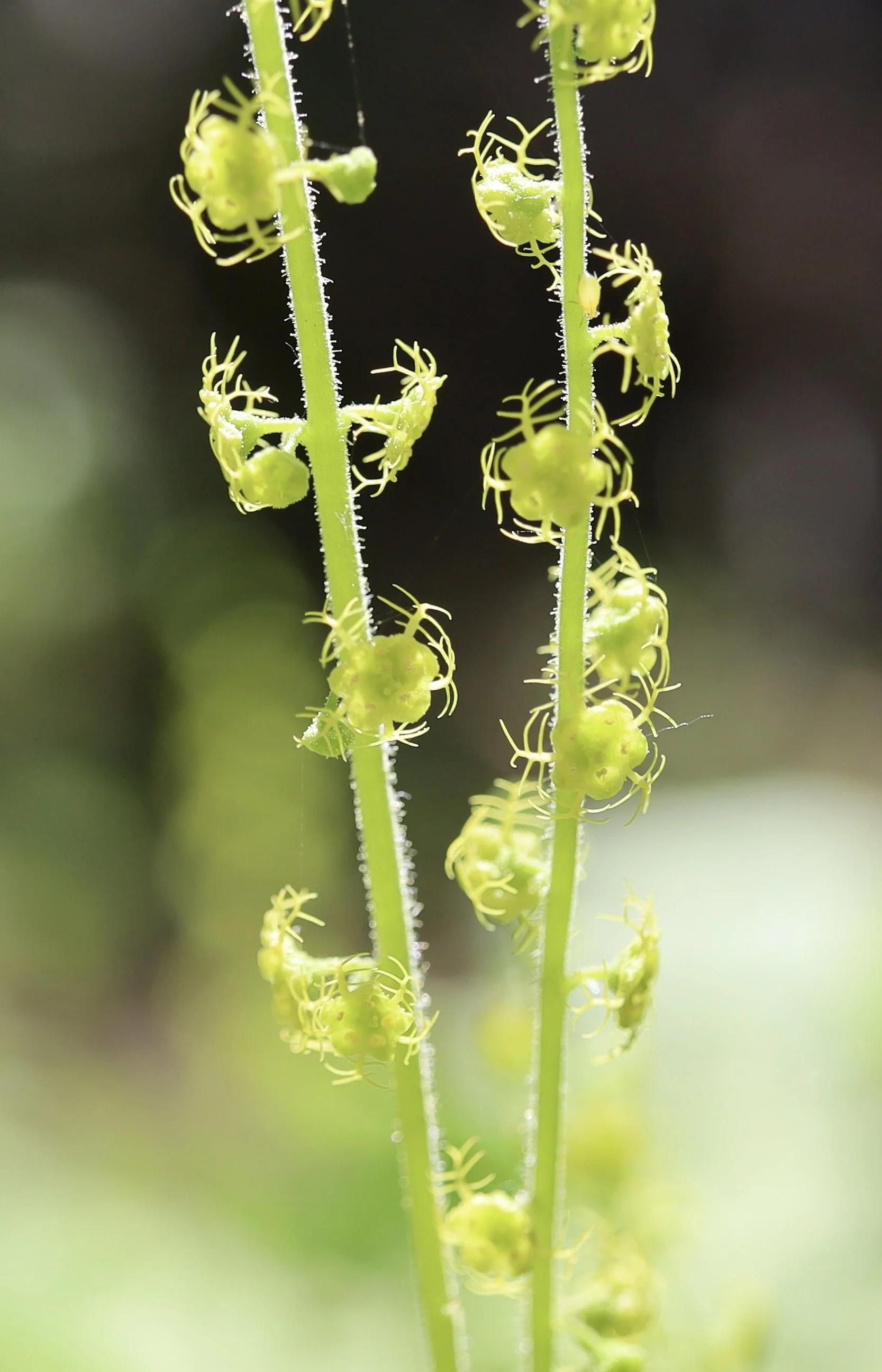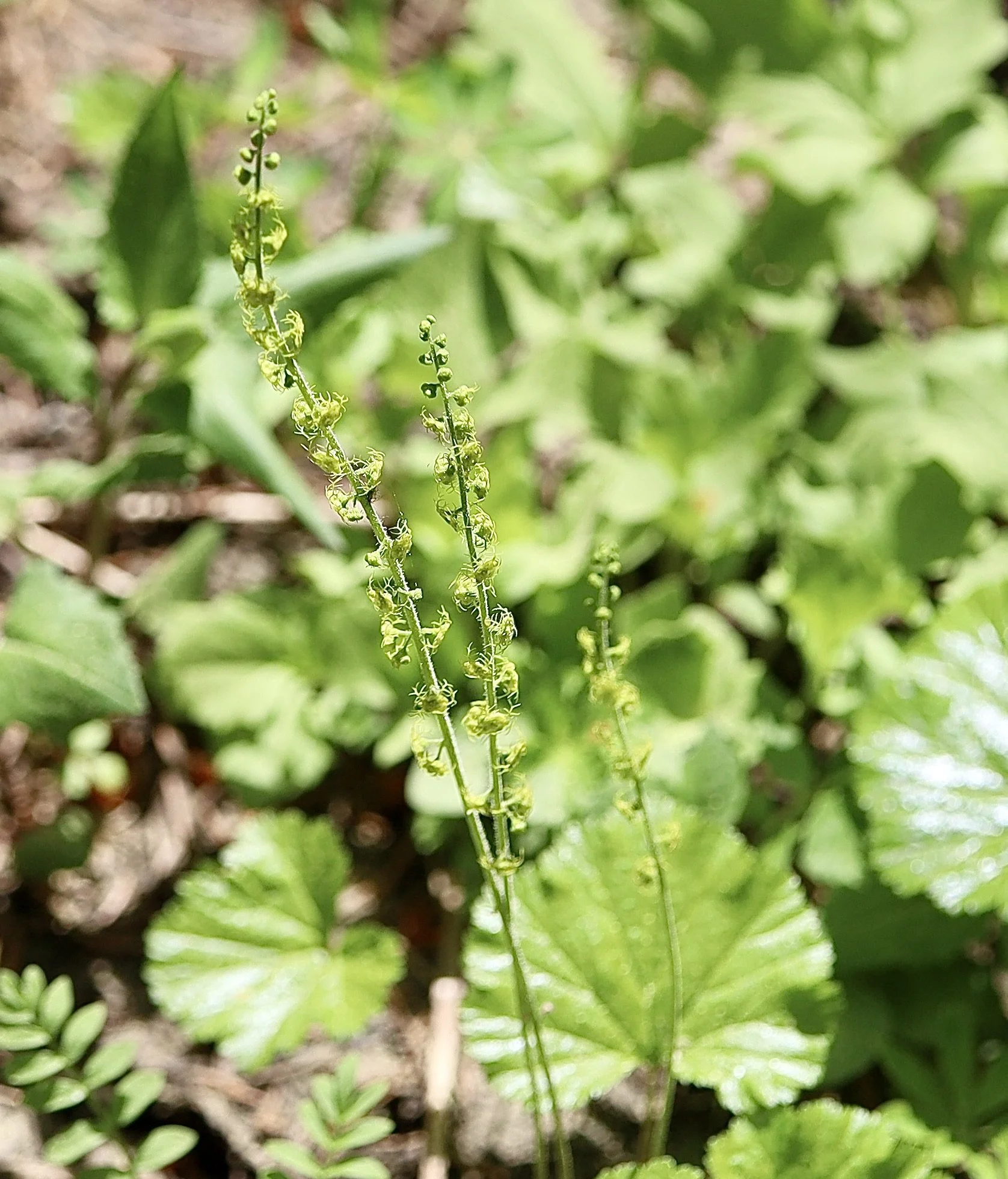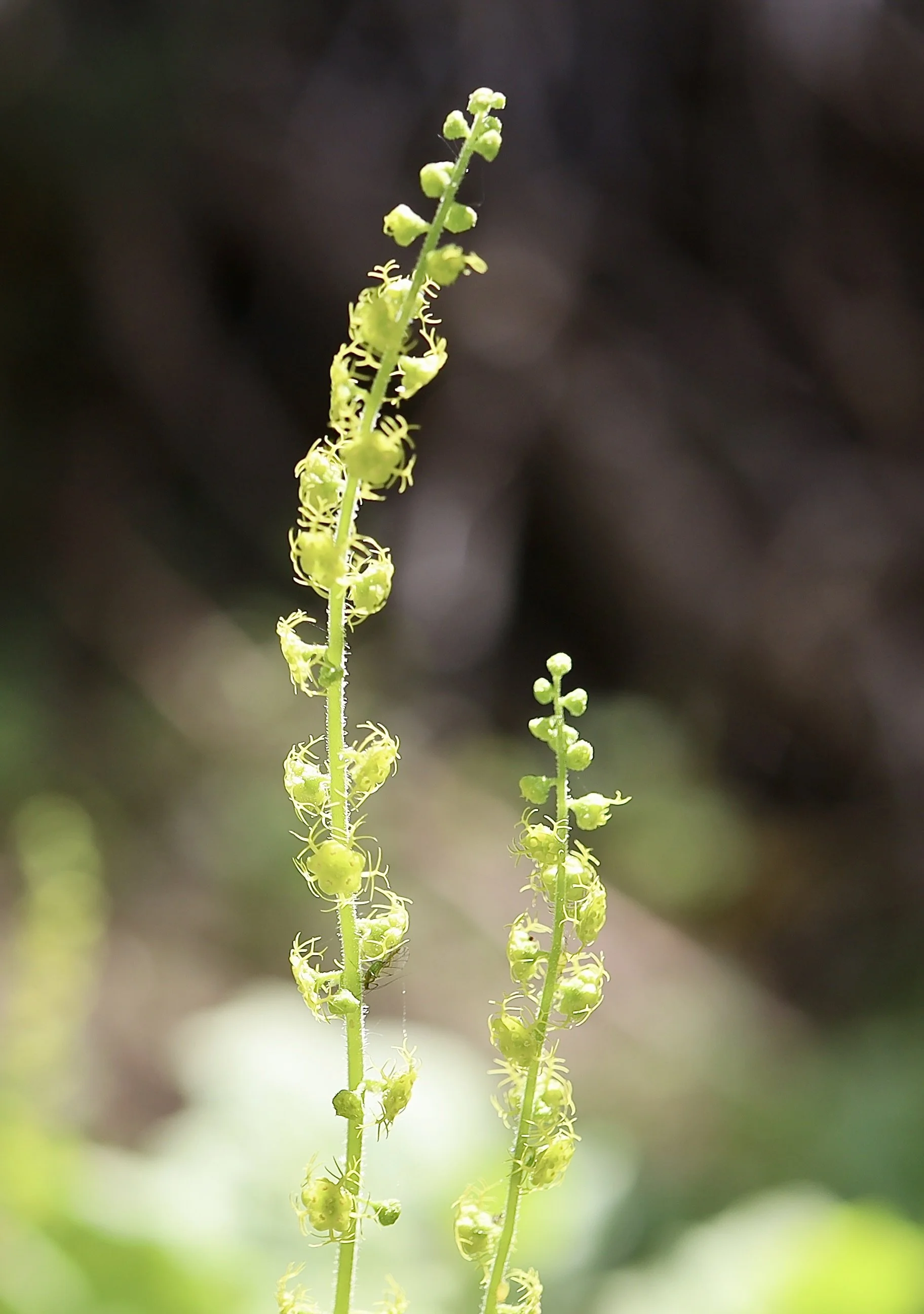 A delicate wildflower, the Brewer’s Mitrewort is found in moist forests. Like all mitreworts, there are numerous flowers ascending the stem. The flowers are cup shaped and have thin, lacy lobes. The leaves are found at the ground level and are more rounded than other mitreworts.