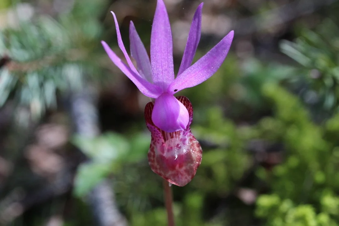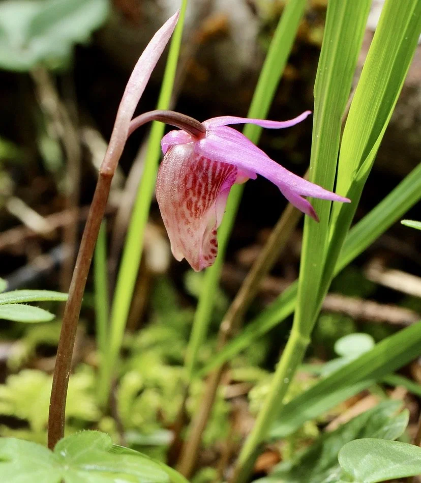 One of the earliest of the wildflowers to pop up, usually in early spring sometime around mid April. This orchid family member is bashful and likes to hide in the duff of the forests of the Northwest, though it is found all around the world. It is one of the most vivid in color of the orchids in our area.
