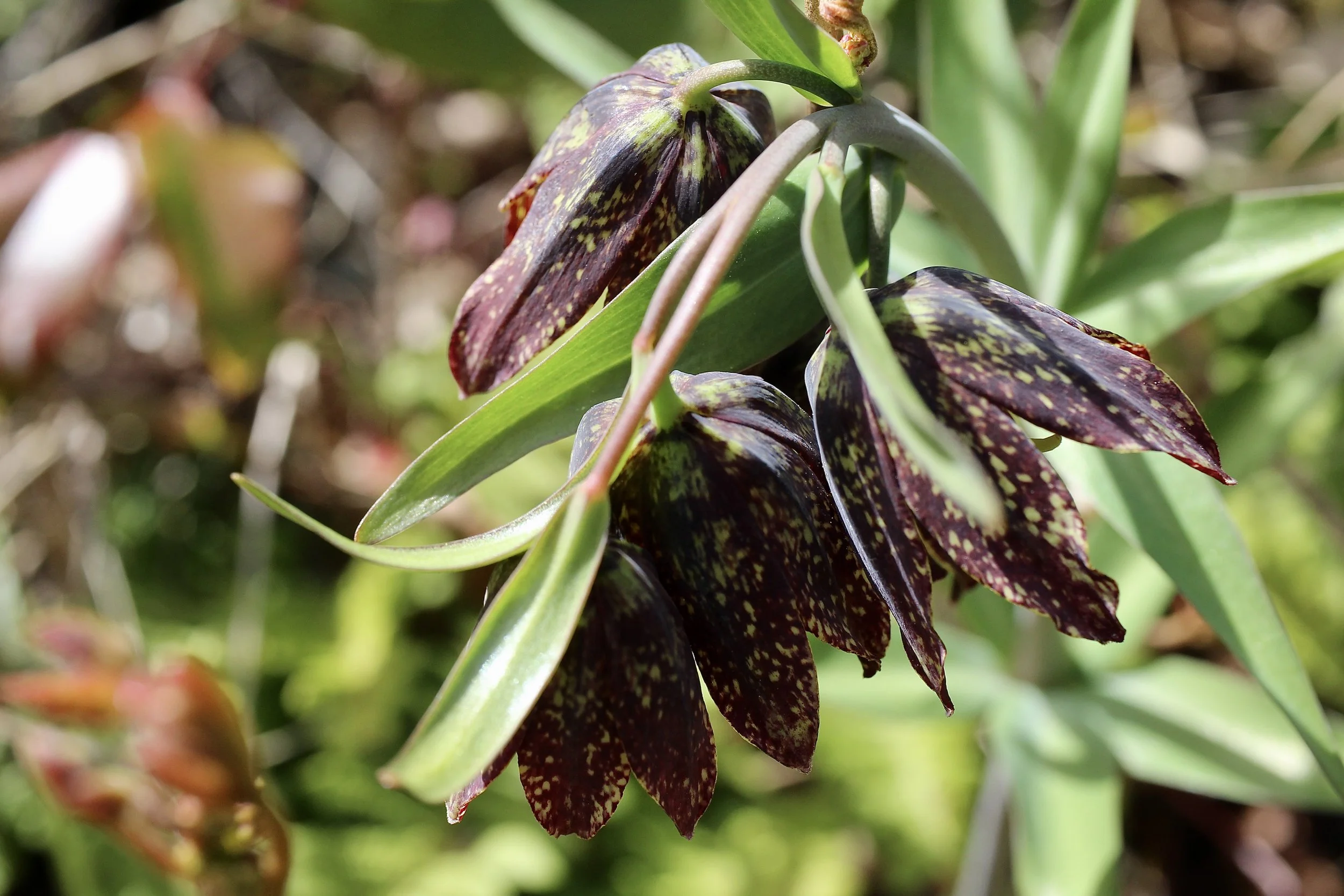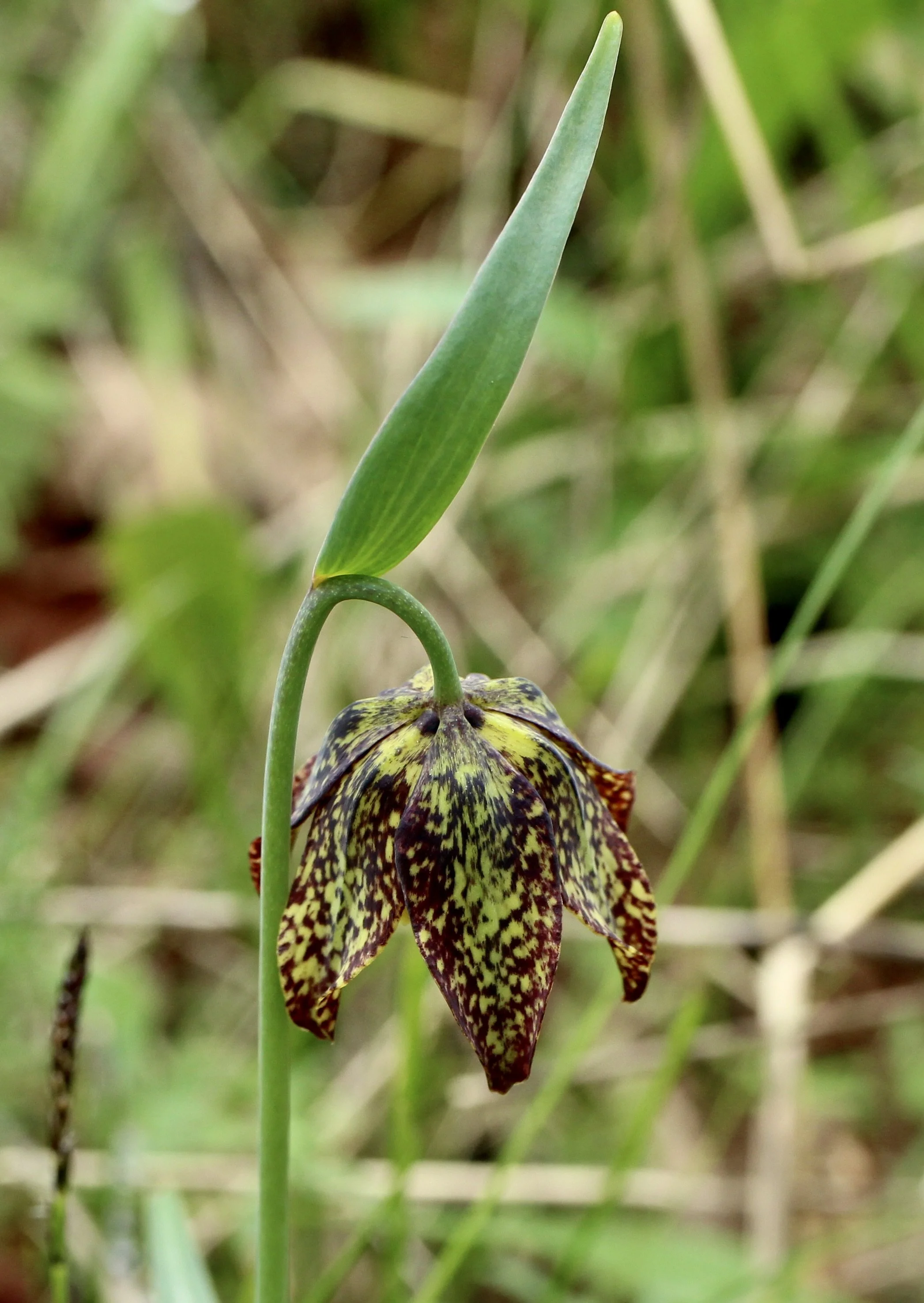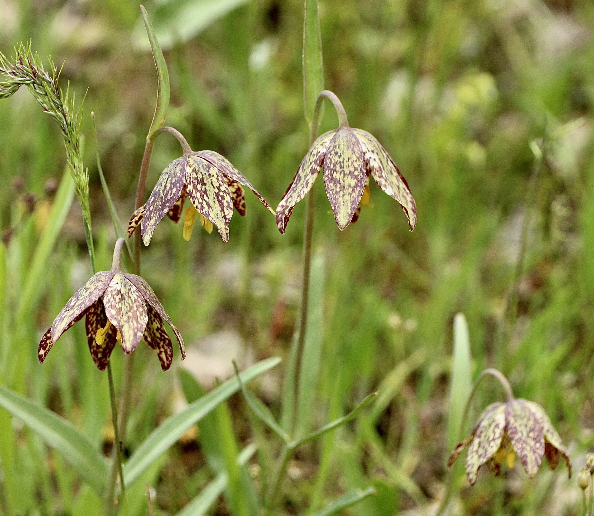 Another of the early bloomers, the Checker or Chocolate Lily grows in slightly damp, shady areas. Growing up to a foot tall, these are sometimes hard to find in the forests as their dappled coloration blends into shaded areas. Often they are found growing in clusters rather than singly.