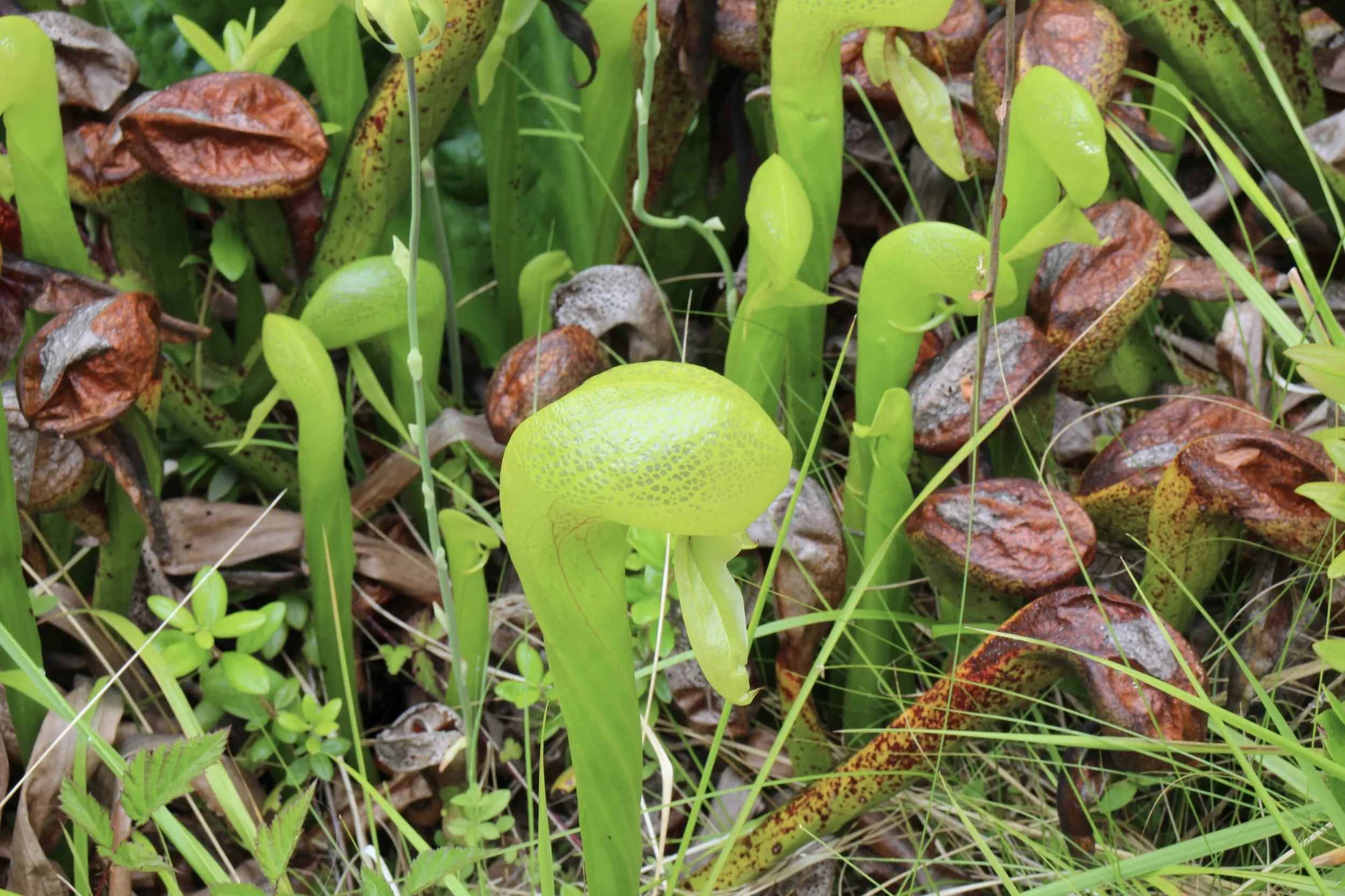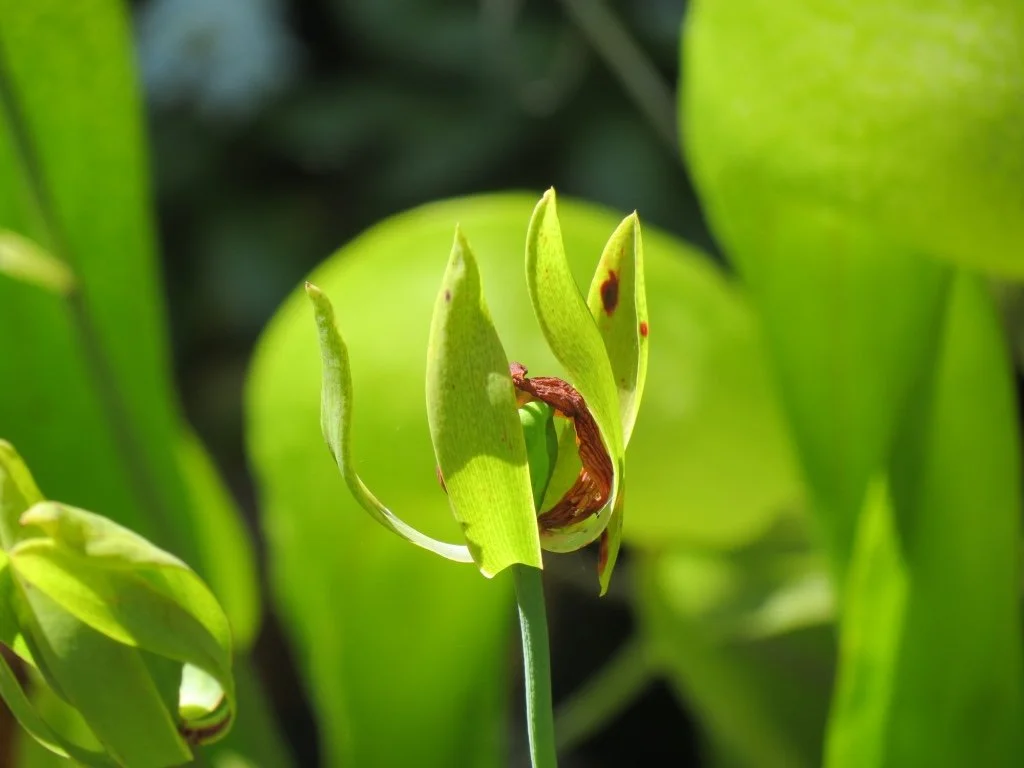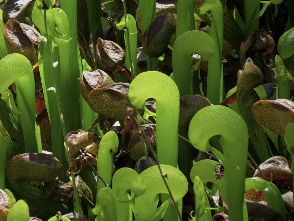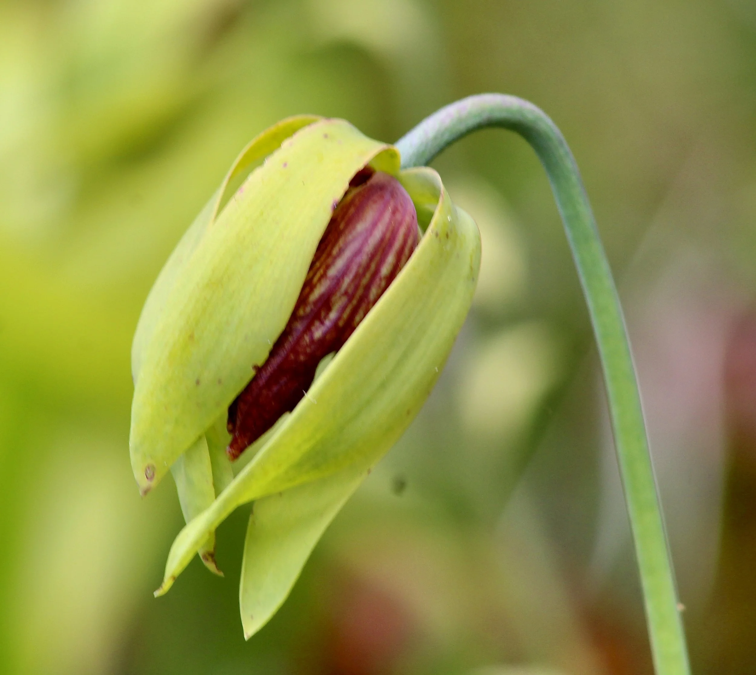 A truly individual wildflower. There are only three native carnivorous plants here in the Pacific Northwest.The Darlingtonia is one of these plants, luring its prey into its tube, which has downward facing hairs that keep the insects trapped. It lives in slowing running water only in southern Oregon and into northern California.