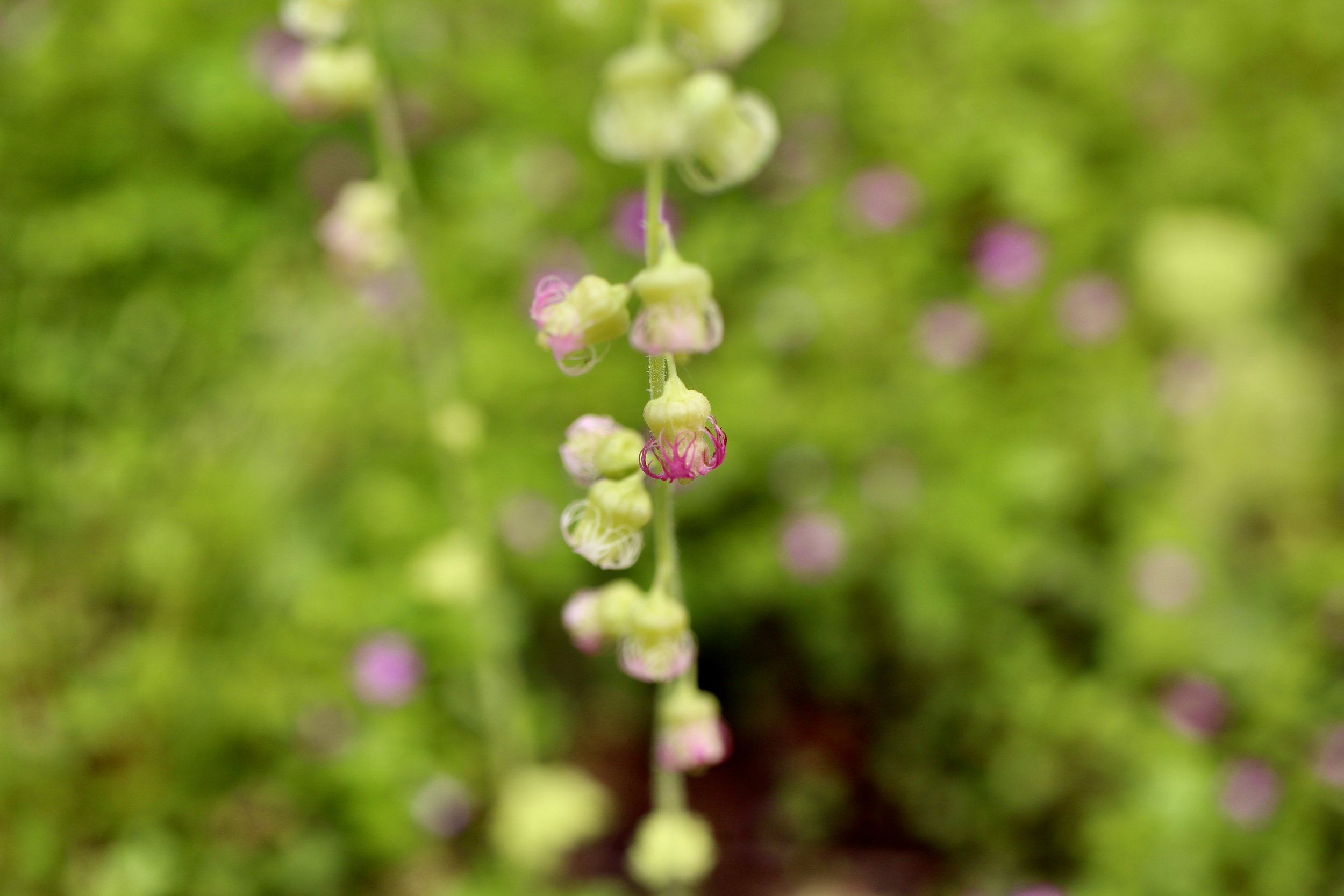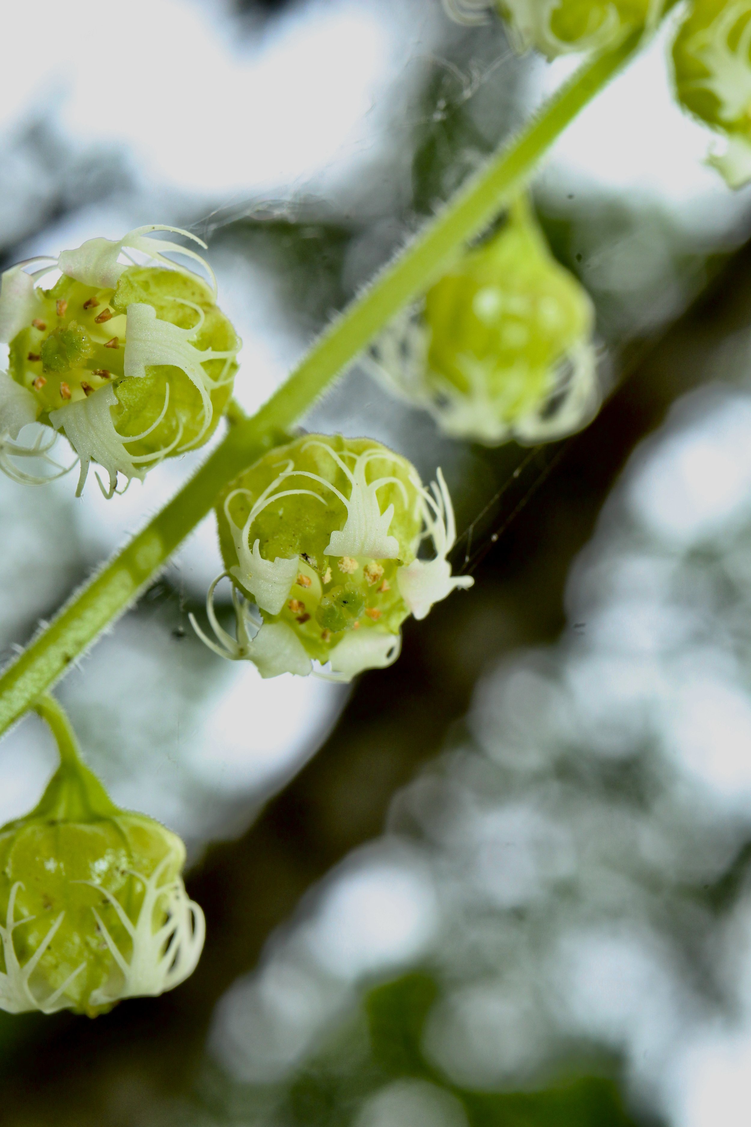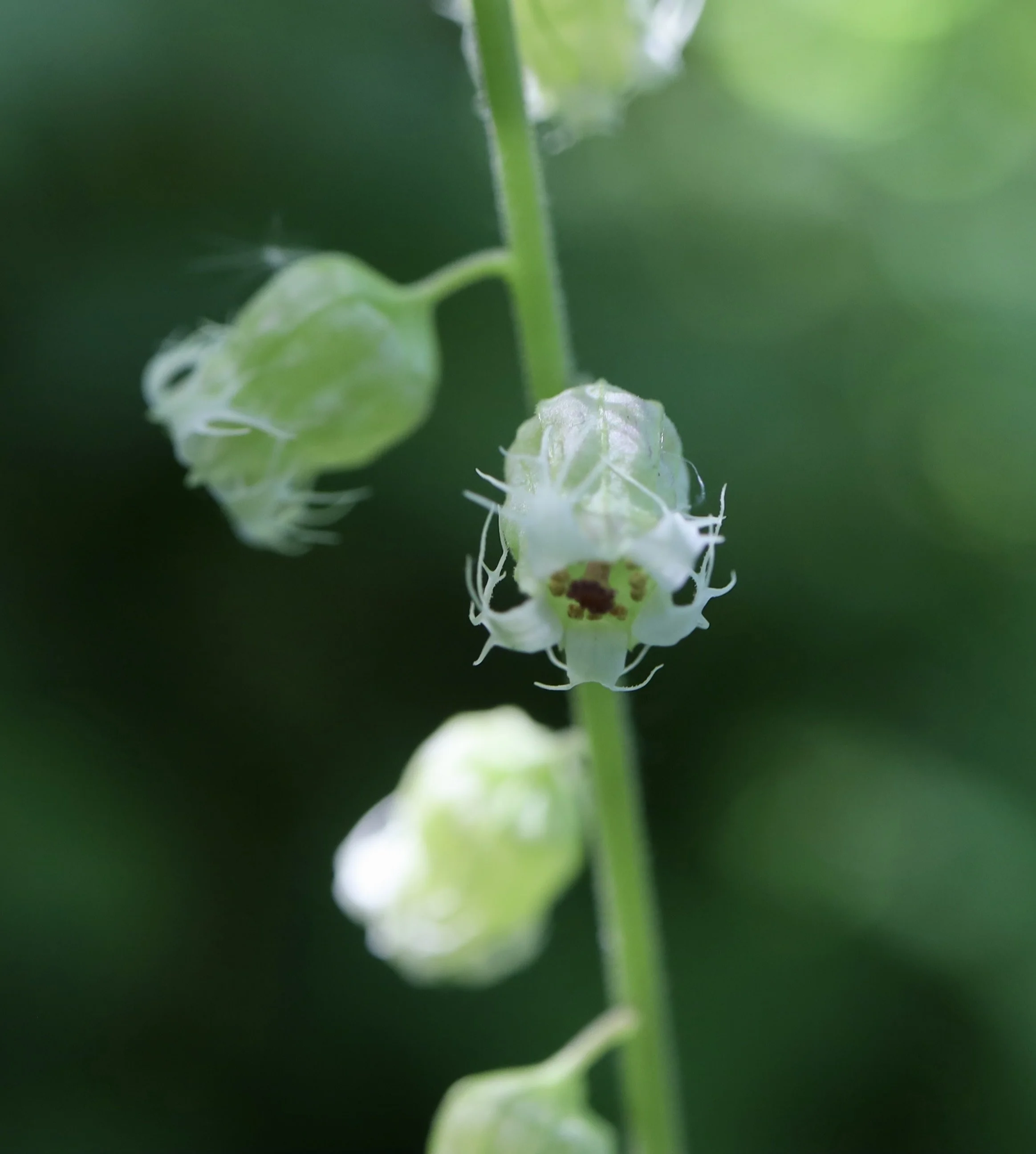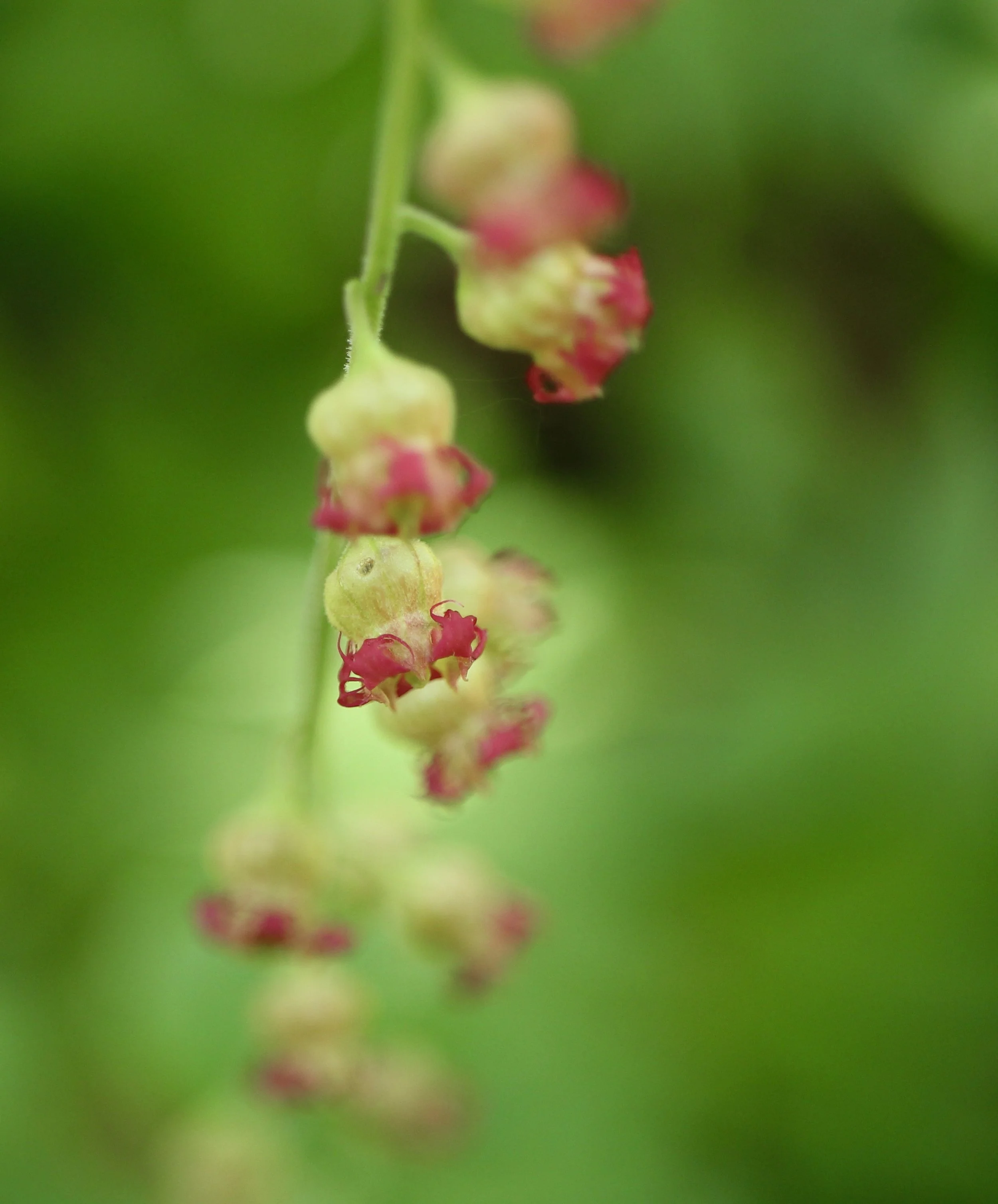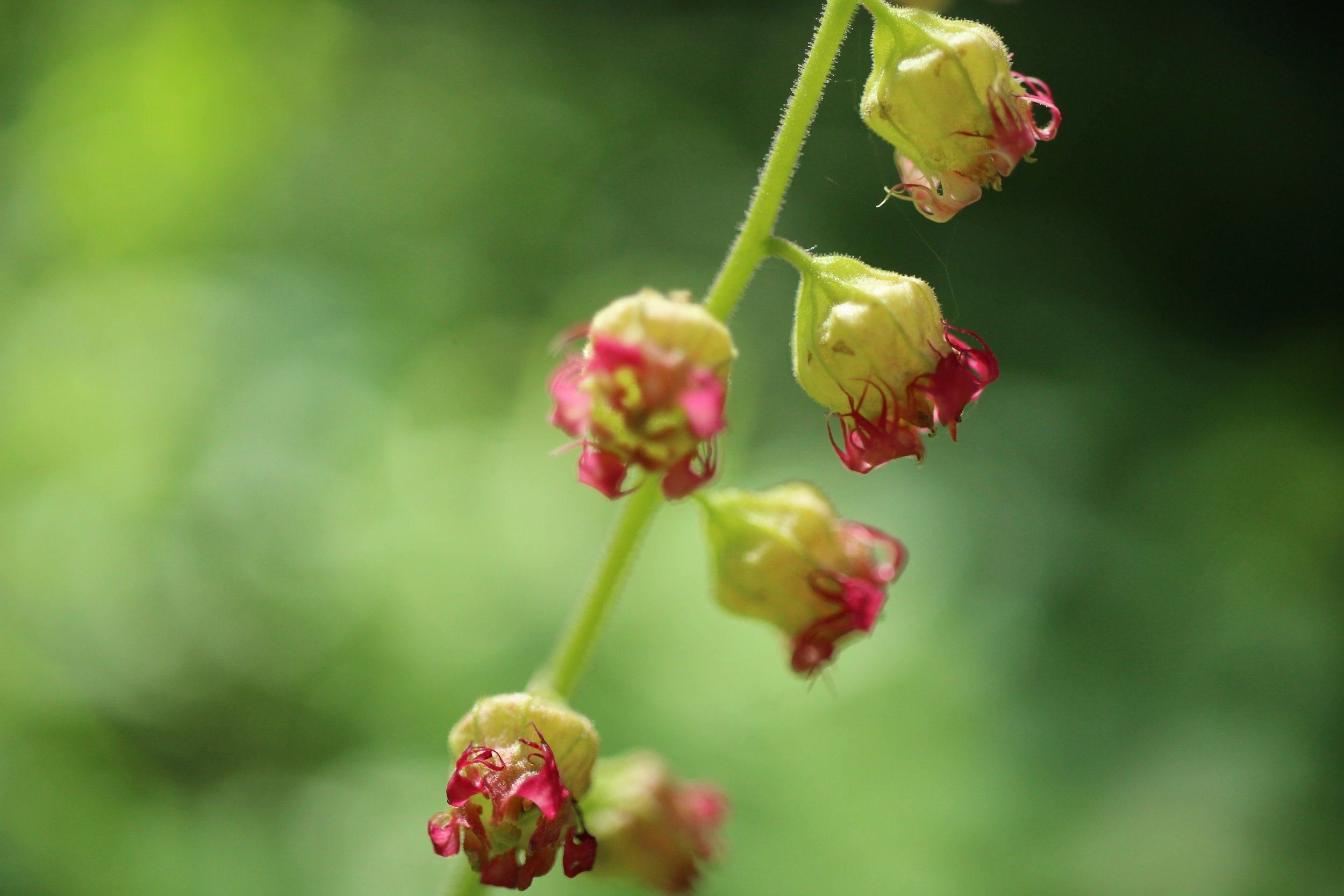 Fringecup has flowers that are white, pink or red, and sometimes look green. This tall wildflower grows in dark moist forests on the west side of the Cascade Mountains. The leaves are heart shaped with toothed edges.