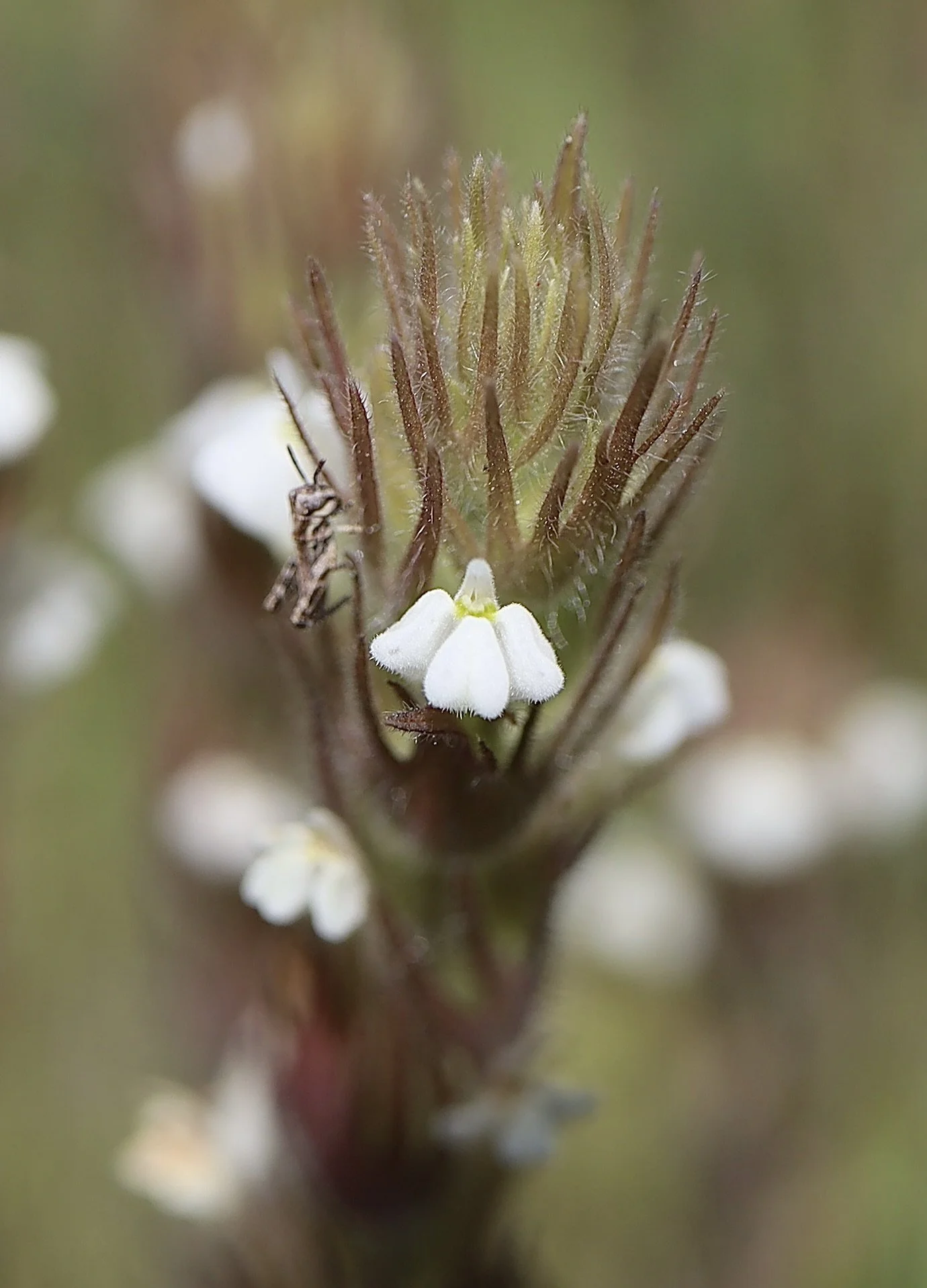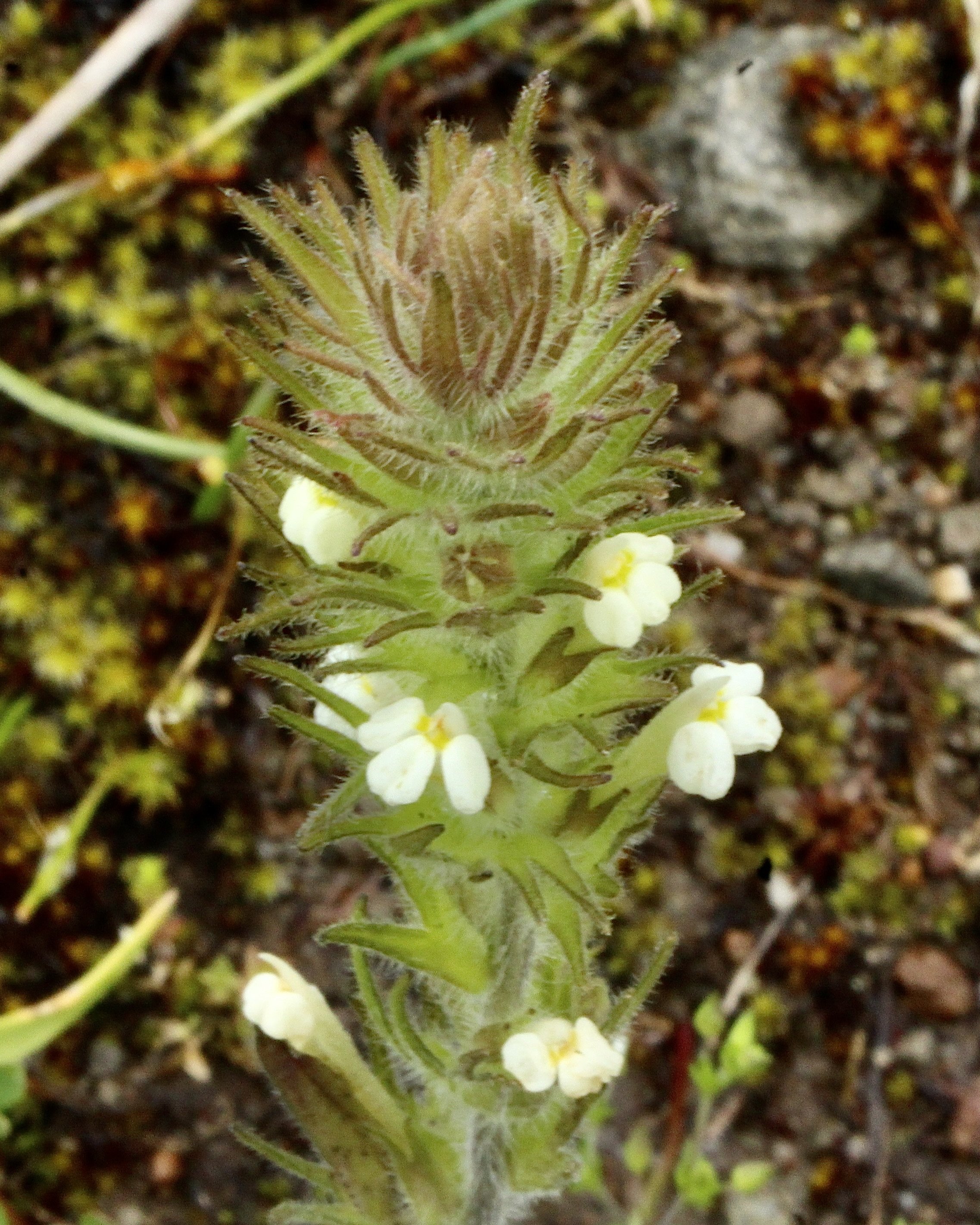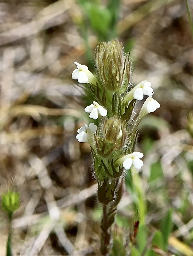 One of the smaller paintbrushes, the Hairy Paintbrush is sometimes called Hairy Owl’s Clover. This small wildflower grows in moist open fields all around the Pacific Northwest. The stems and leaves are all covered in fine hair. The flowers have three main pouches and a longer upper lip than the pouches.