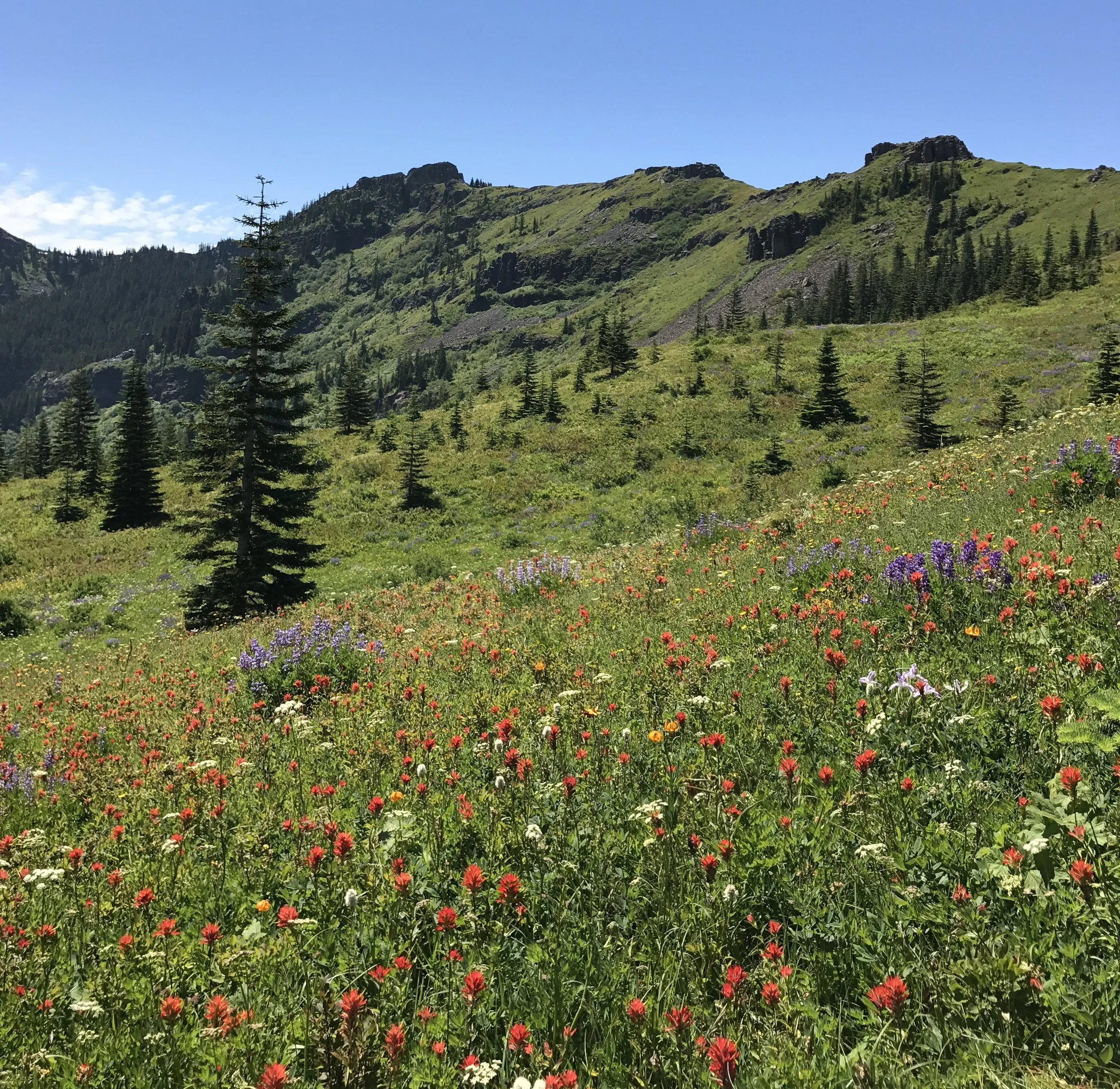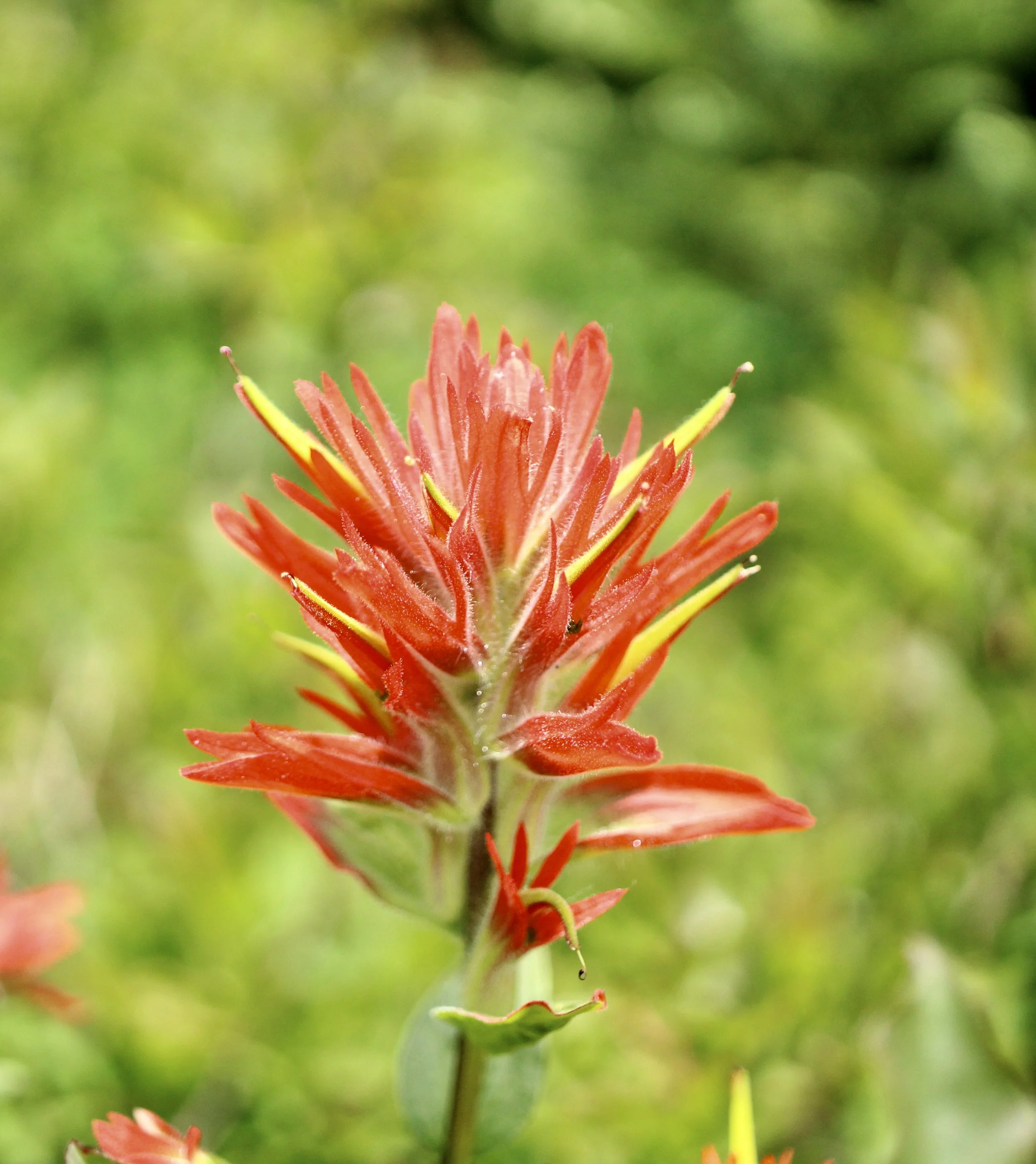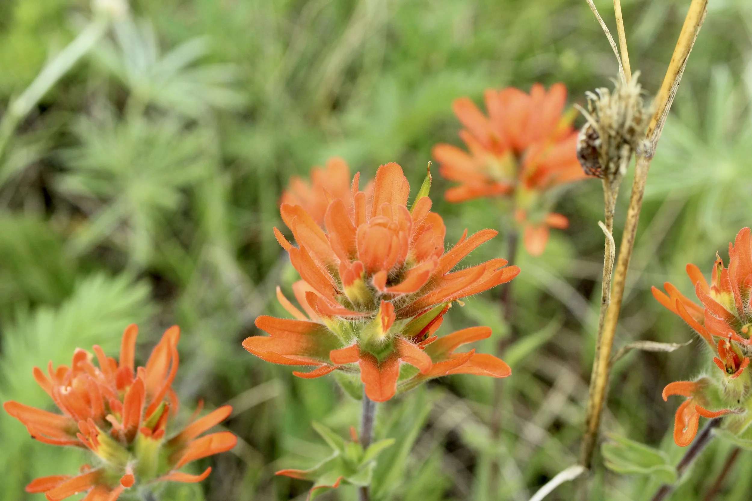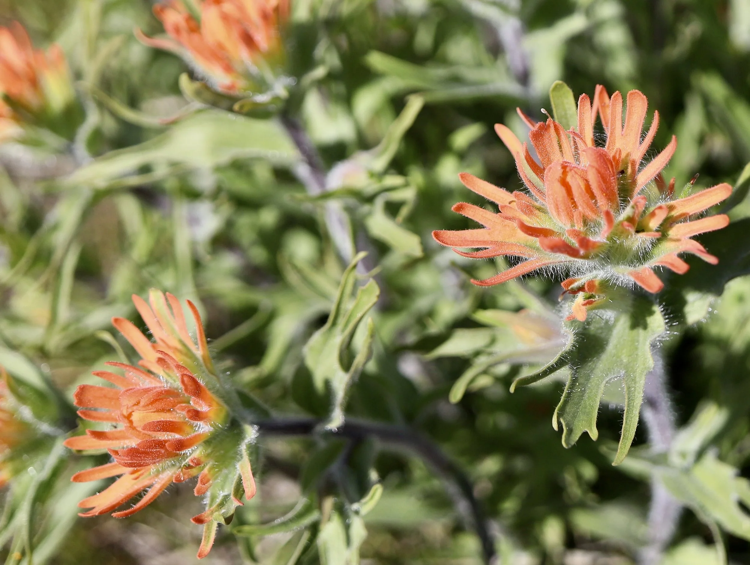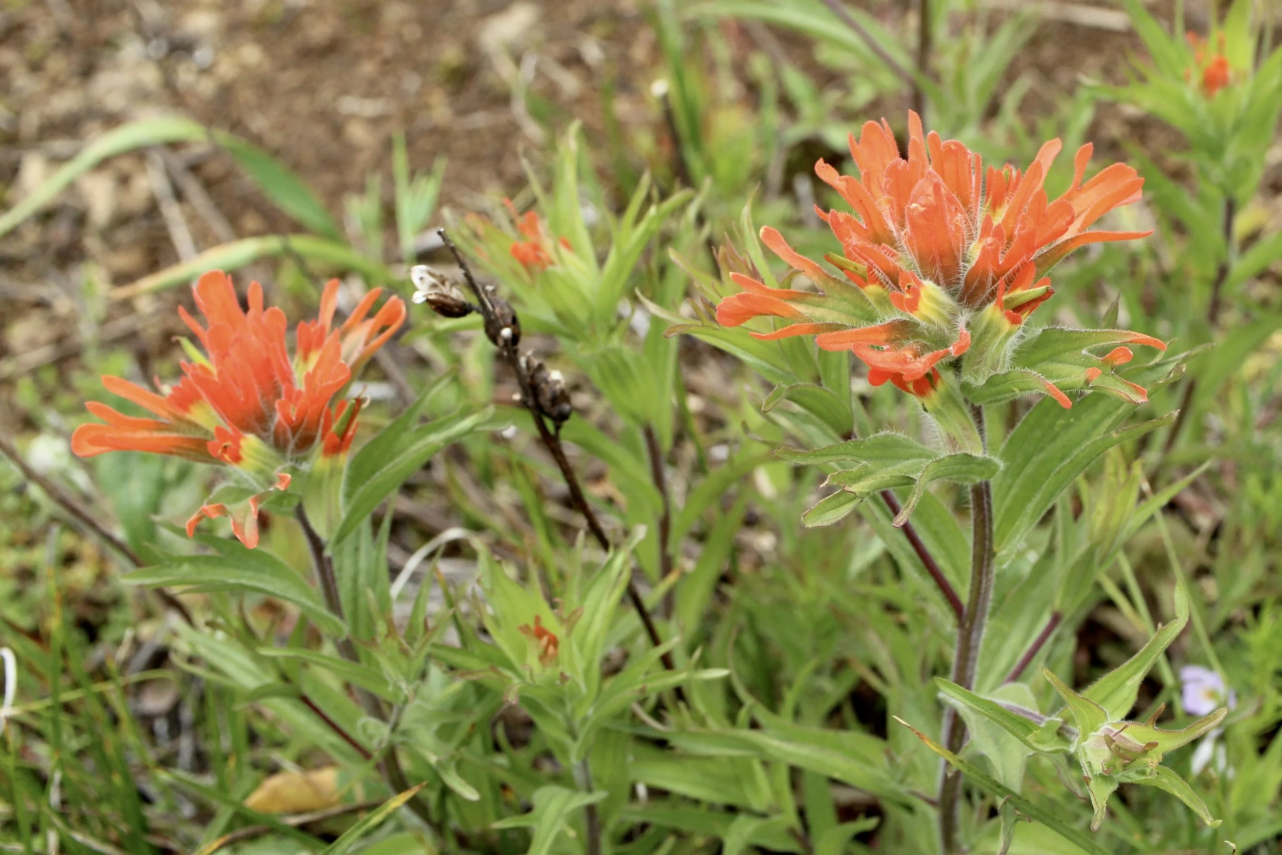 There are many different types of paintbrushes that thrive in the Pacific Northwest. The Harsh Paintbrush is probably the most prevalent. The flower petals are lobed with deep clefts to each. The leaves are also lobed into three sections. This wildflower will fill hillsides, as shown below on Silver Star Mountain in southwest Washington.