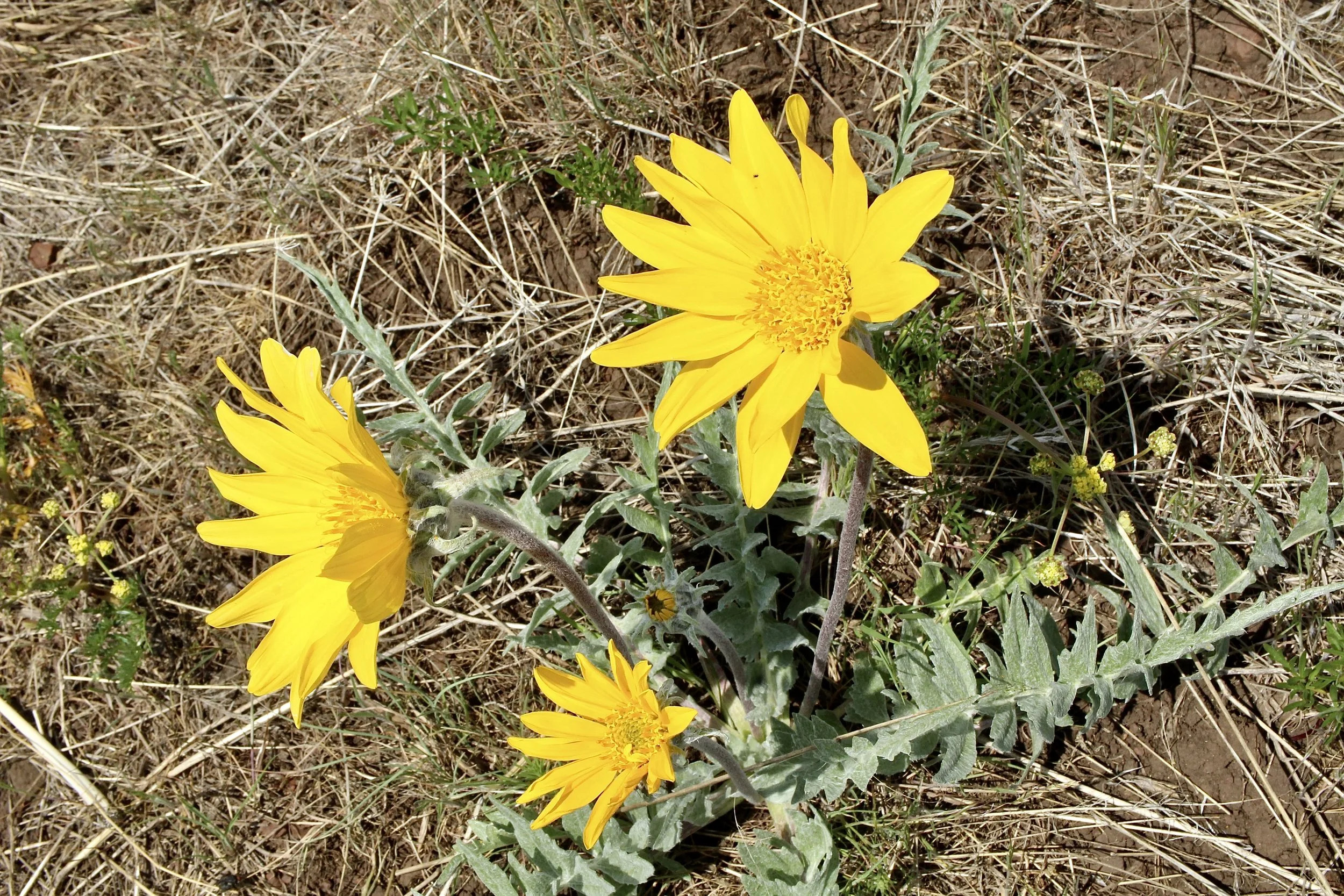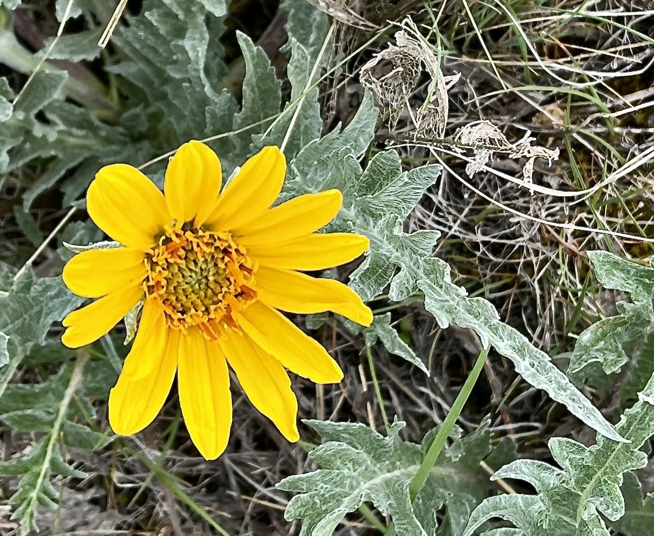 The Hoary Balsamroot is found mostly east of the Blue Mountains in Oregon. It lives in meadows and hillsides. The leaves are most distinctive though there are a couple of other balsamroot plants that have very similar leaves.