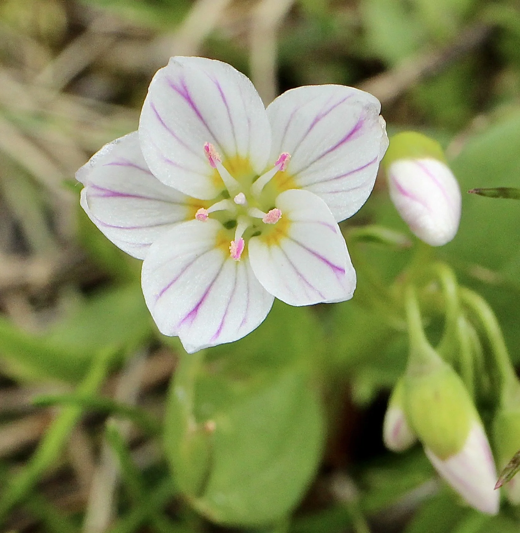 An early spring wildflower, this lovely little flower stands out in the grasses due to it’s bright white petals with pink stripes. The leaves are indeed oblong and pointy, hence the name “lanceleaf”.