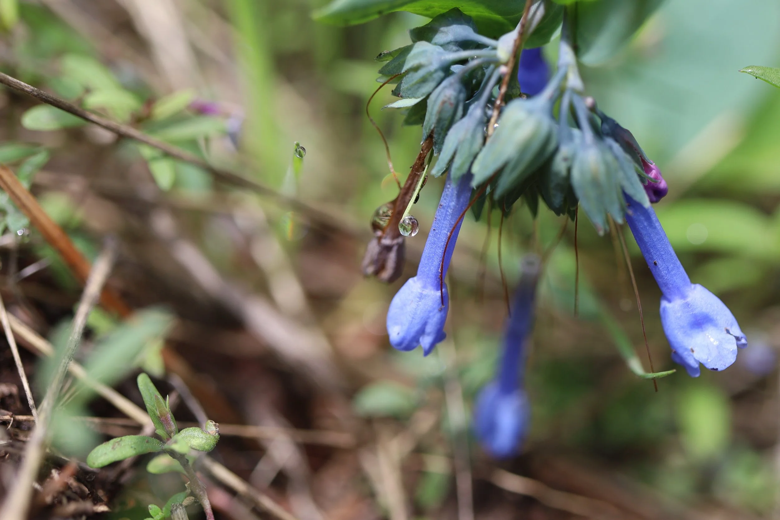Long-flowered bluebells have tight clusters of flowers at the top of the stalk. The flowers are tubular and the leaves are lanceolate. The Long-flowered Bluebell lives in sagebrush and pine forests east of the Cascades.