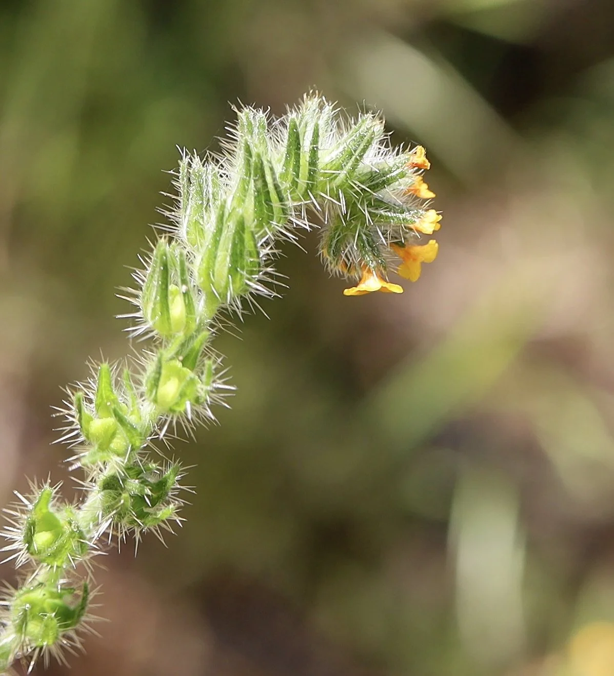 The Menzies’ Fiddleneck is very similar to the Bugloss Fiddleneck. The major difference is that the throat of the Menzies does not have bulges like the Bugloss does. The Menzies’ Fiddleneck has a hairy stem and leaves and the inflorescence curls into a fiddleneck as it ages.