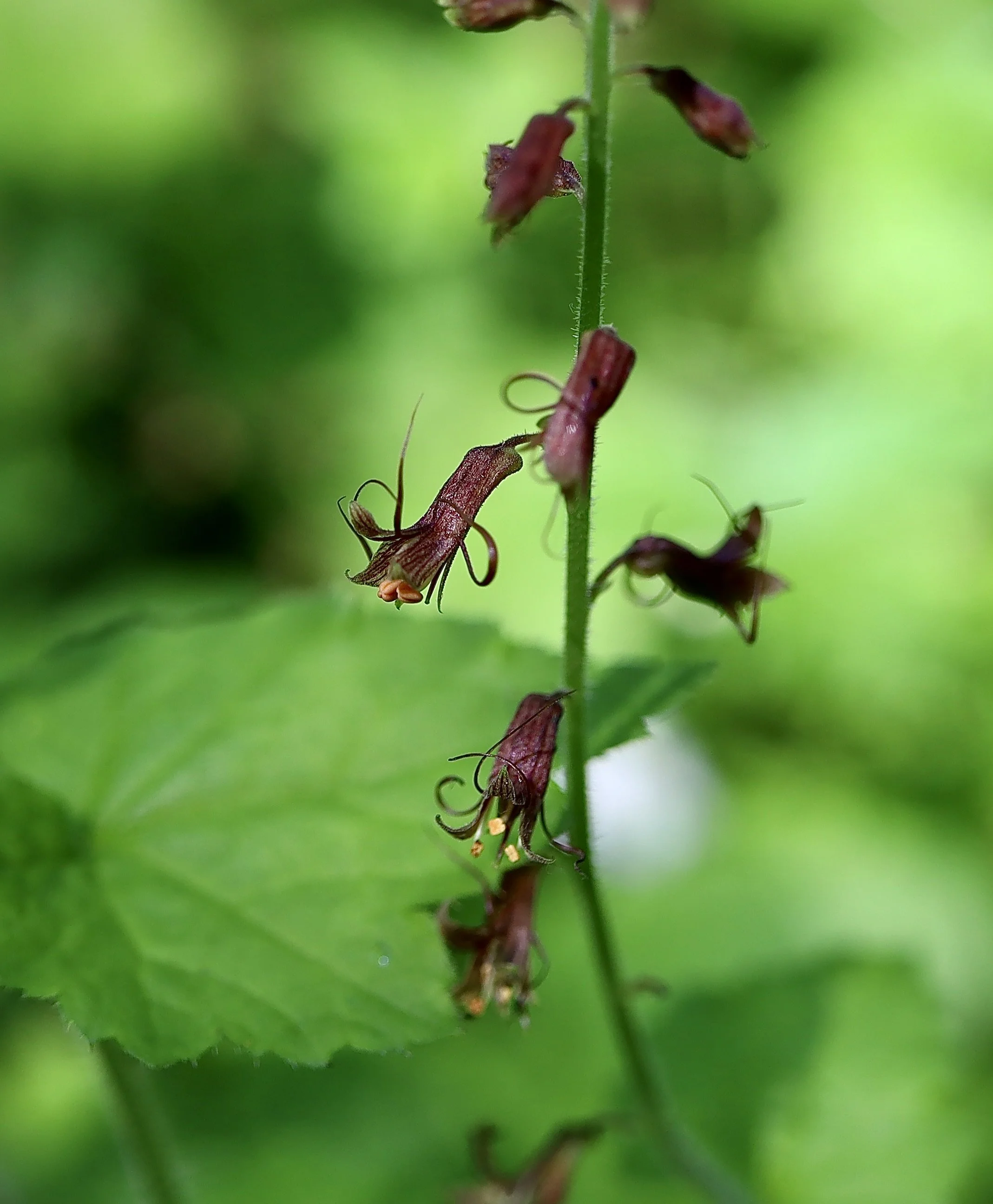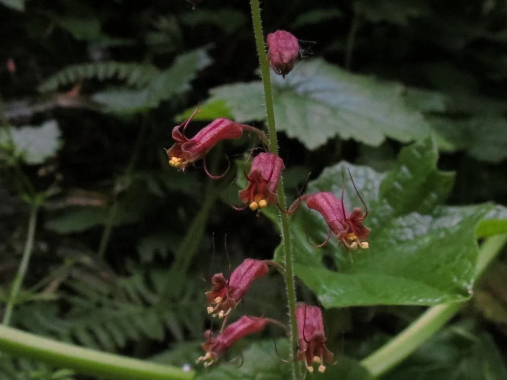 The Piggyback Plant only grows in the moist forest areas west of the Cascades. It likes growing at stream banks and can up to a couple of feet tall. The flowers are brownish to purple and are easily recognizable. Sometimes this is called Youth on Age.