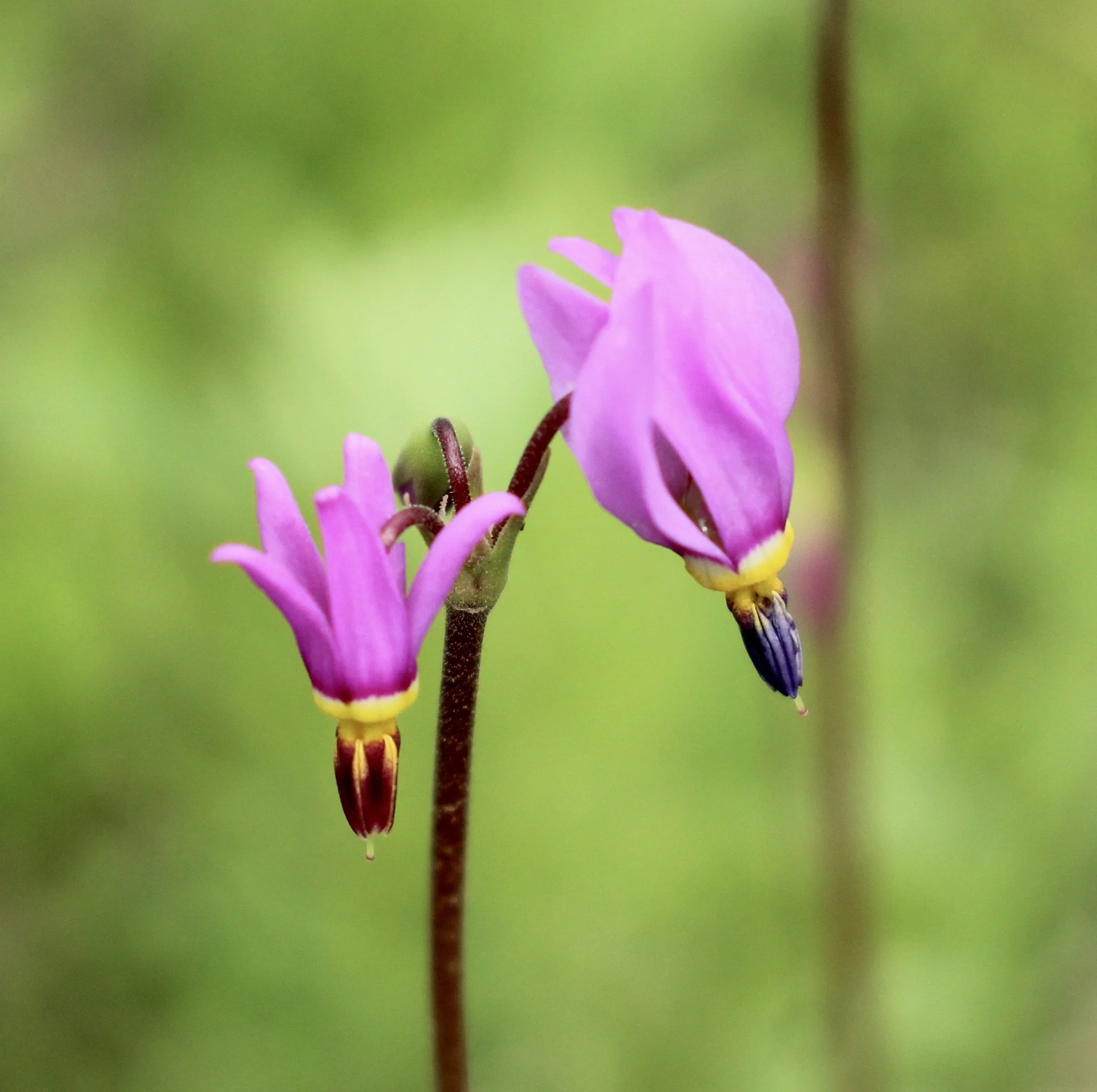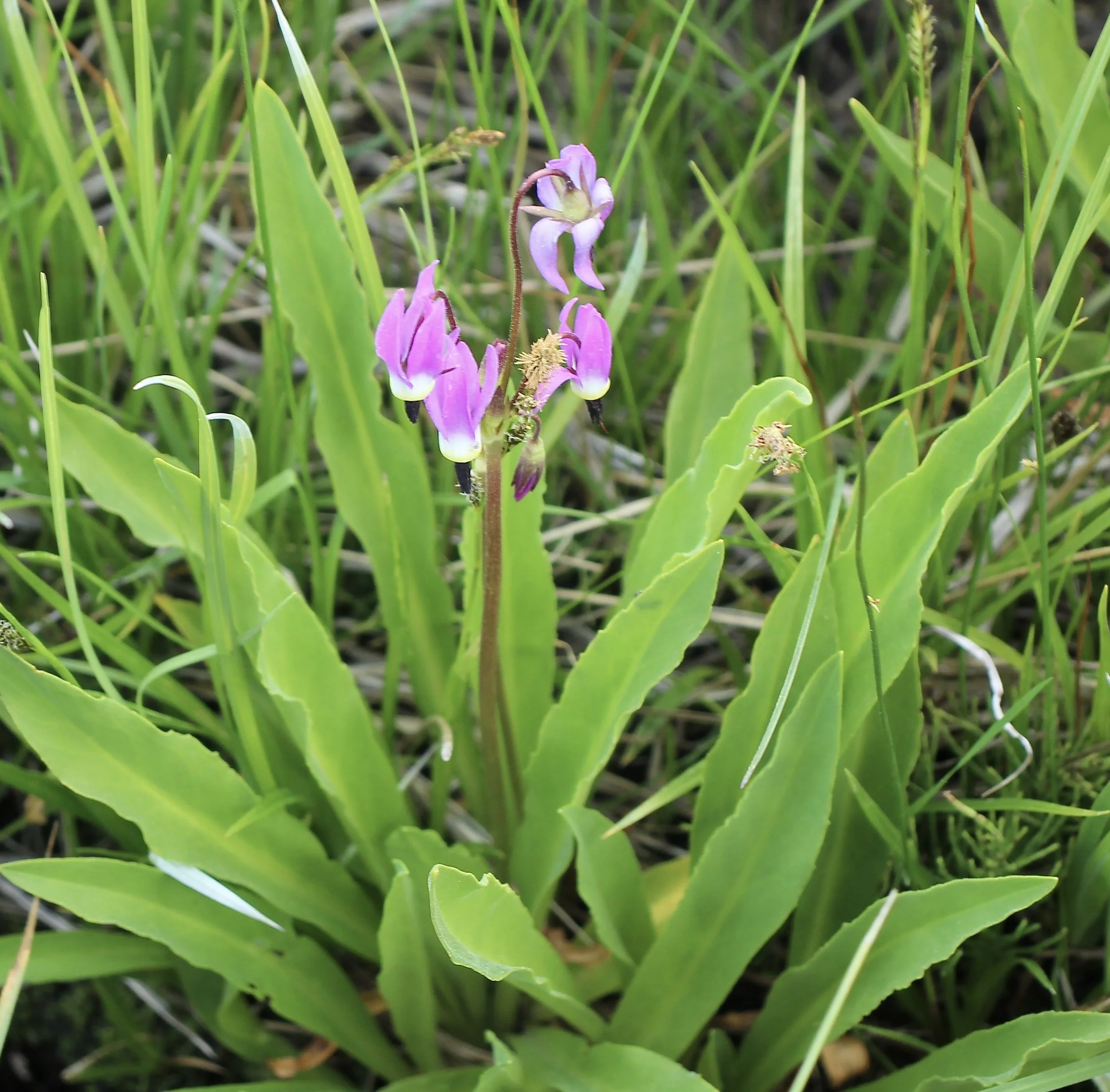 The Poet’s Shooting Star is easily confused with the very similar Bonneville Shooting Star. The Poet’s Shooting Star has glandular, or slightly hairy, leaves and stalks. Widely distributed in the Pacific Northwest, often sharing space with the Bonneville Shooting Star.