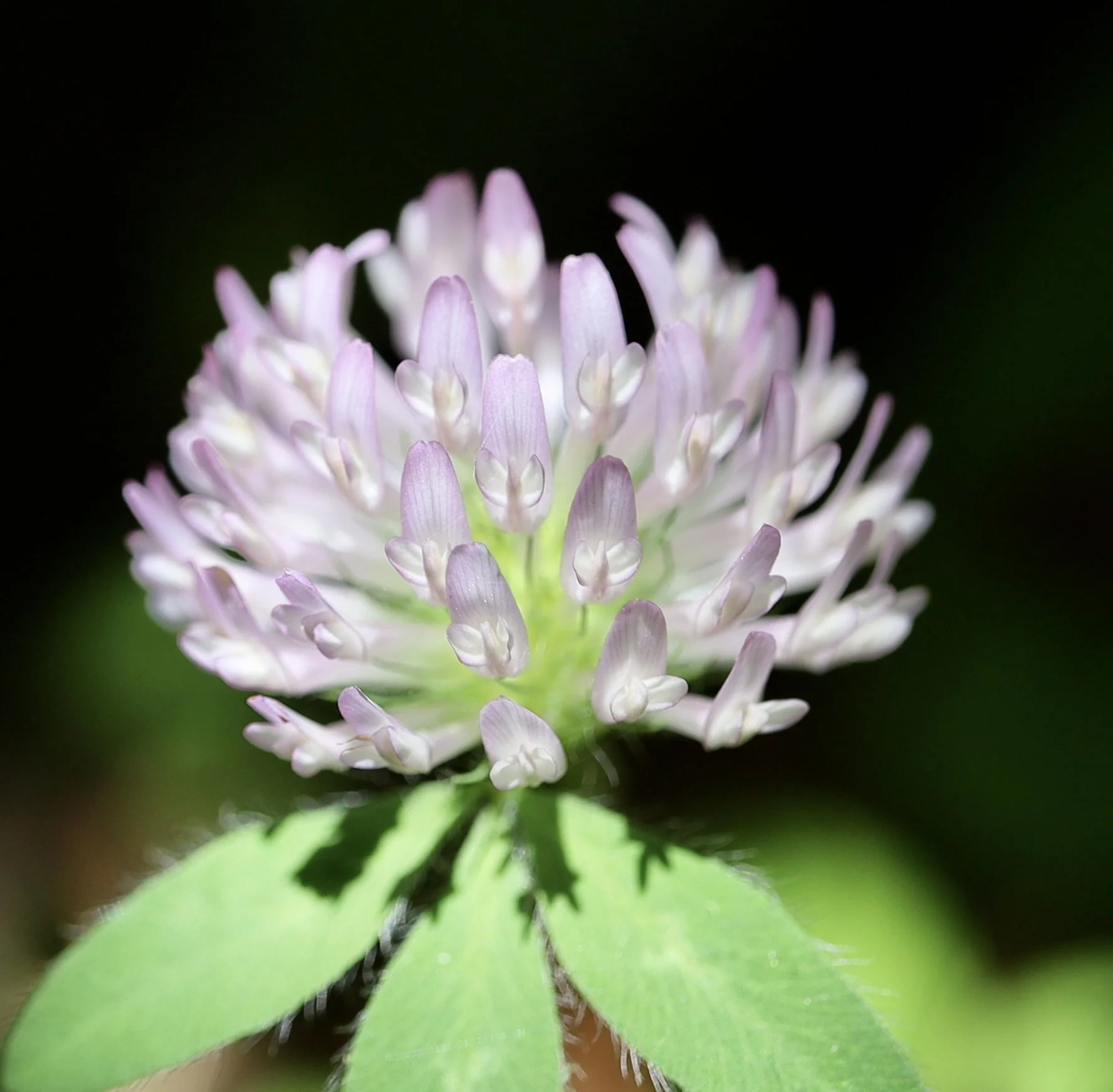 Like other clovers, the Red Clover has three leaflets which are part of an individual leaf. This wildflower has multiple flowers in a dense head. Very common throughout the Pacific Northwest.