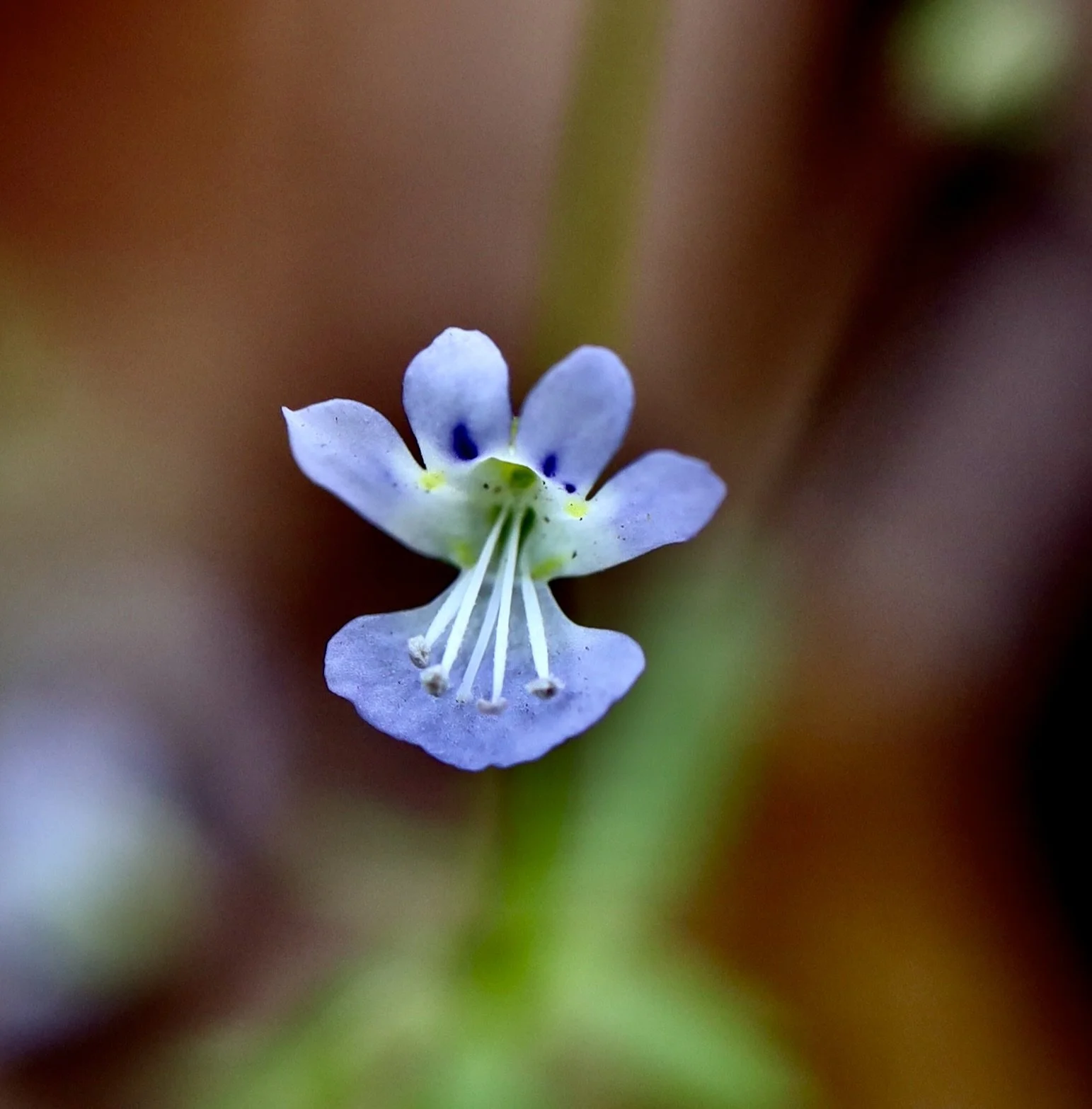 The Small Flowered Tonella is truly one of the smallest wildflowers I have ever seen, or missed on so many hikes. The next to the last photo here shows a comparison to an SD card, which measures about one inch wide and an inch and a half long. So the flower is easy to walk right past while hiking. But it is a most complex little wildflower. Rich blues or purples show the pattern on the petals, with white in the center. The Small Flowered Tonella grows in shady locations.