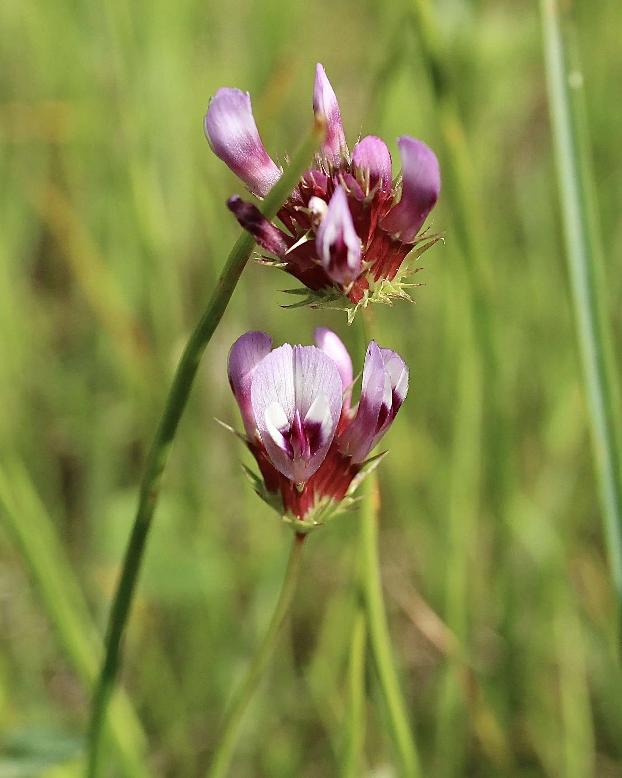 This little clover hides in the grasses of meadows and grassy areas. Tomcat Clover grows west of the Cascade Mountains, but also grows along the Columbia River going east. It is a small wildflower growing low to the ground and only up to about 8 inches high. The petals of the inflorescence are pale purple/pink with white tips.