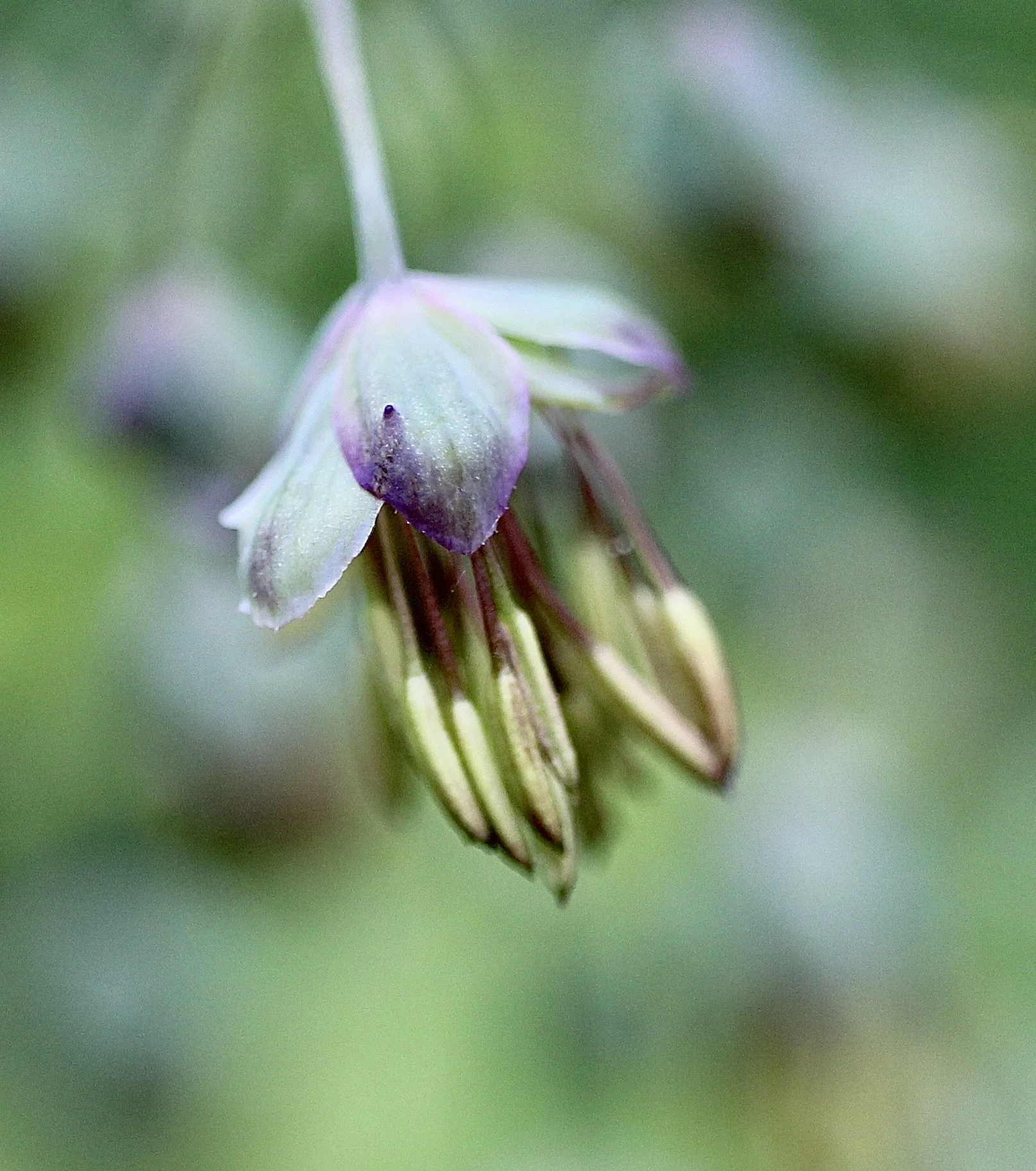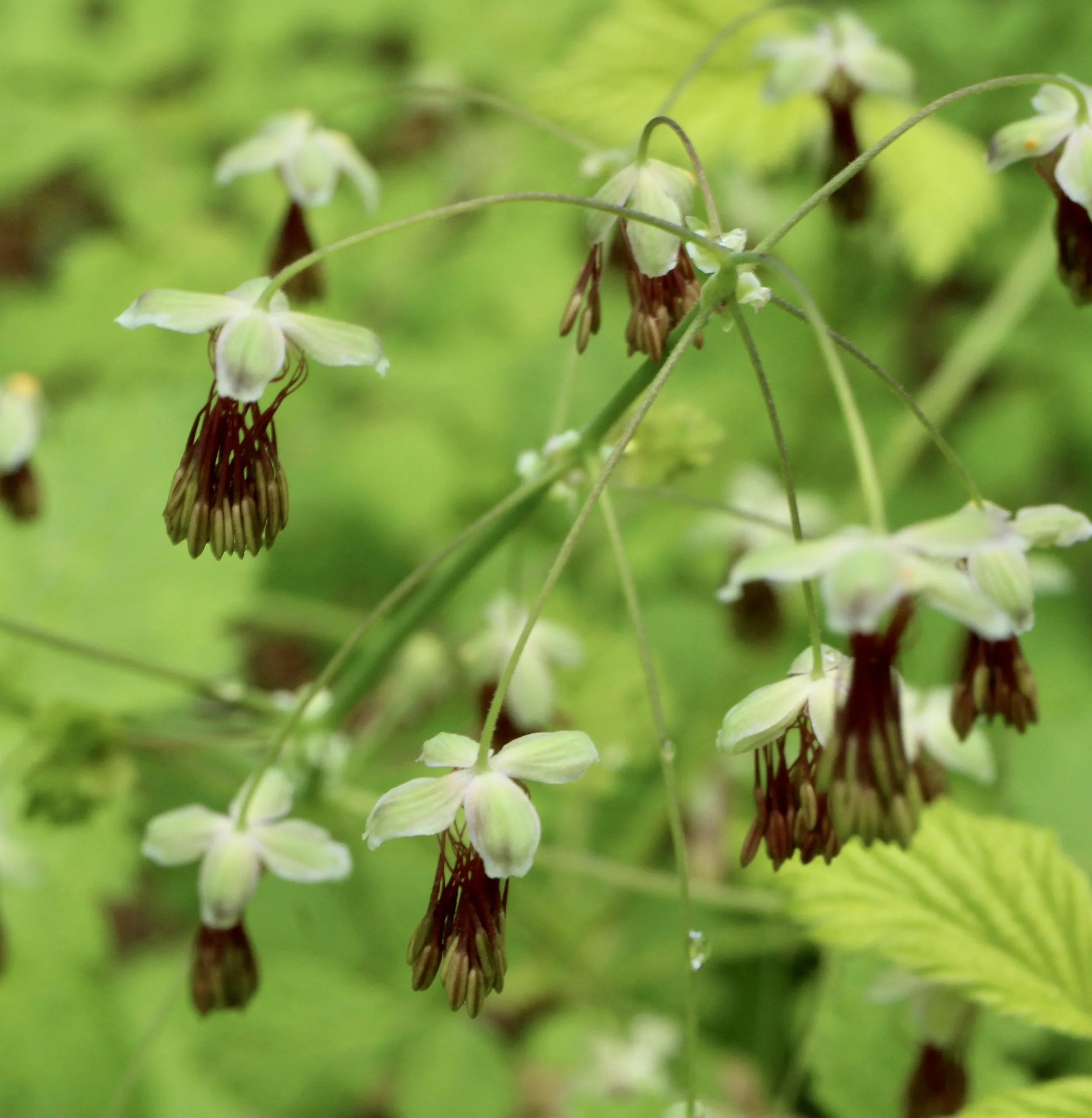 Western Meadowrue is a little different than other wildflowers: there are both male and female plants. The male wildflowers have no petals, just four or five sepals from which the fifteen to thirty stamens droop down. These stamens are brown to purple in color. The female plant has flowers that are filaments of a light color. The leaves are usually divided into three lobes.