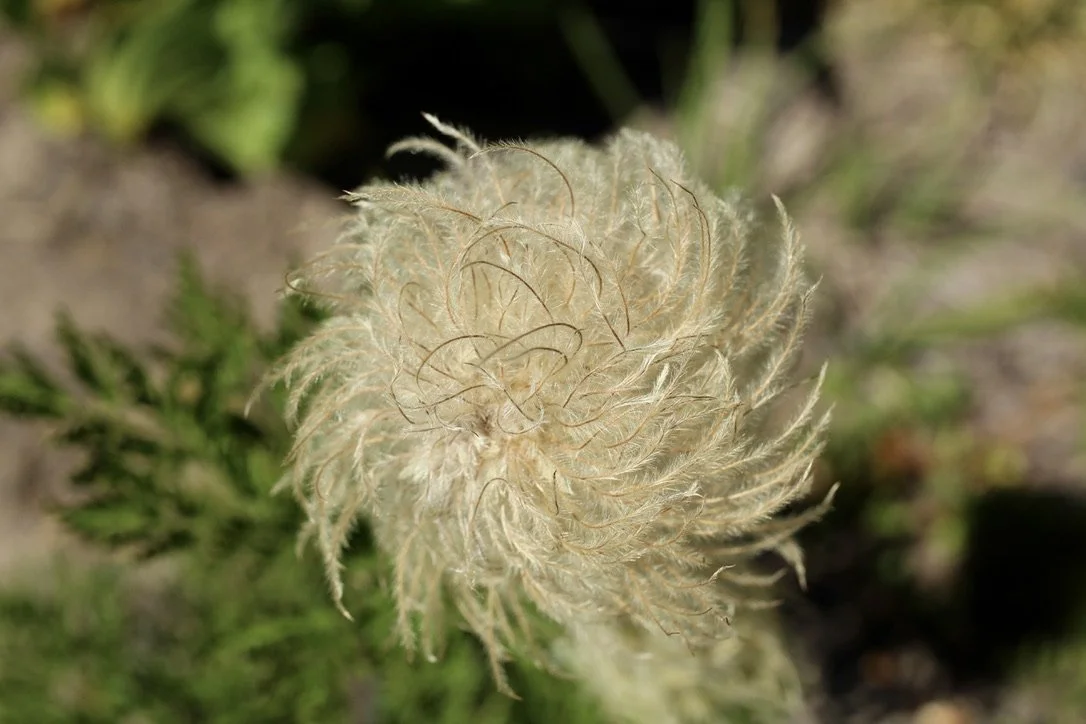 Western Pasqueflower is an alpine wildflower growing at higher elevations in the Cascades. Probably its most notable feature is the seed heads; these are called moptops or old man of the mountains due to the way the seeds hang down and dance around in the wind.