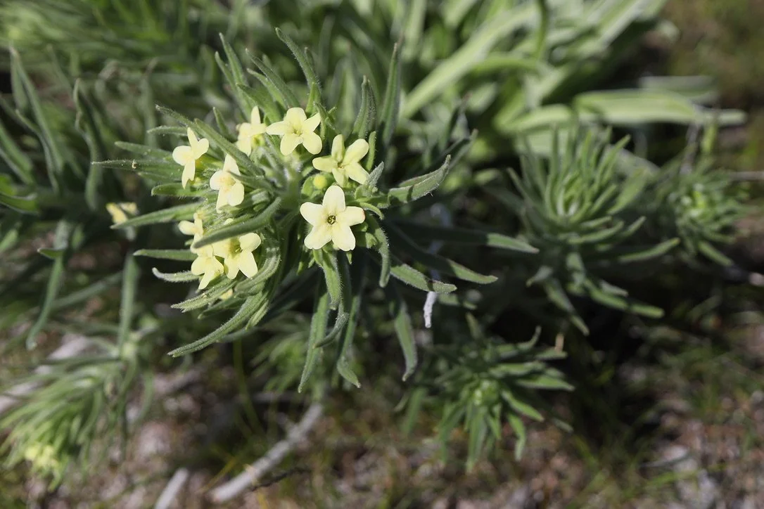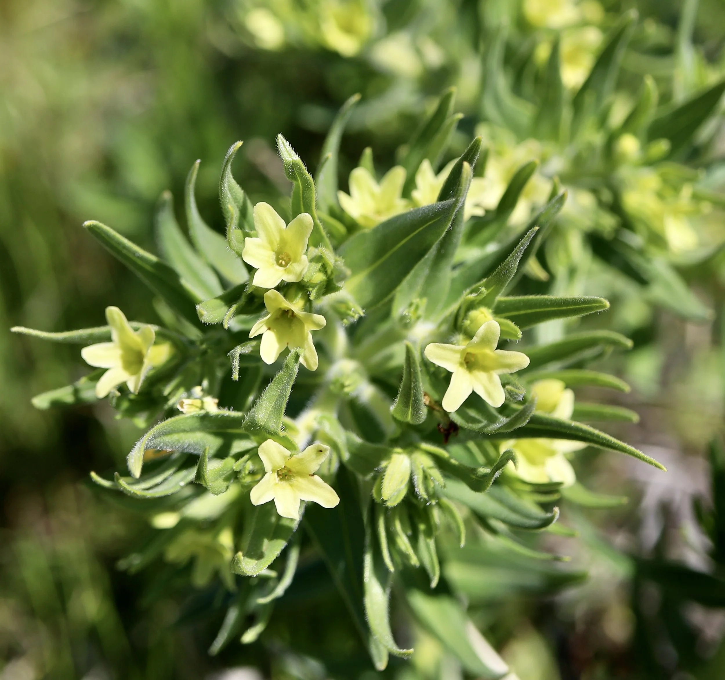 I learned of this wildflower being called Puccoon, but have lately learned it is called Western Stoneseed and also Gromwell. So it is listed here under Western Stoneseed. When the flowers fade off, the seeds look like a small group of black pebbles, hence the name. I don’t have any photos to show that; I will find some and add a photo in the future.