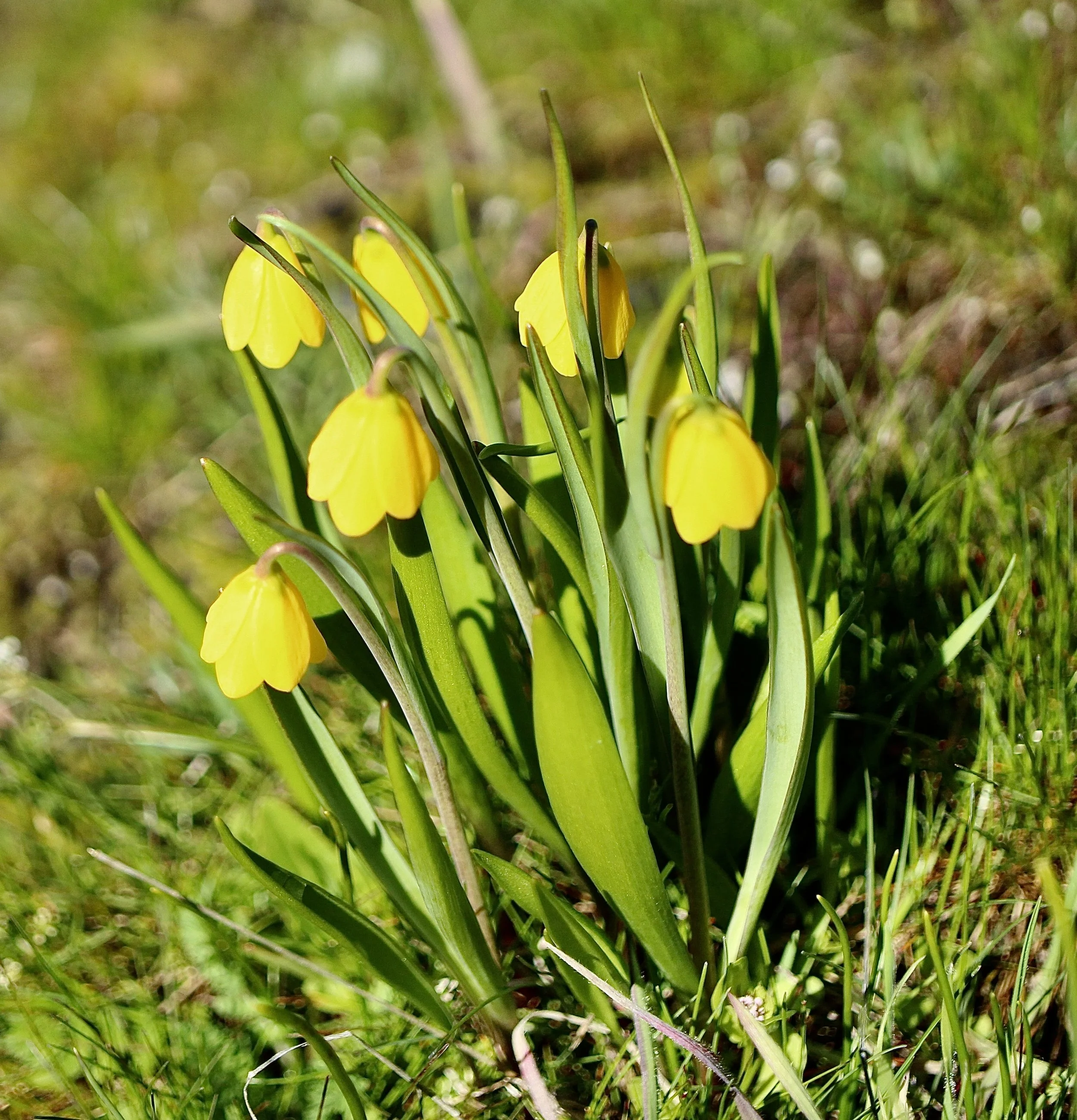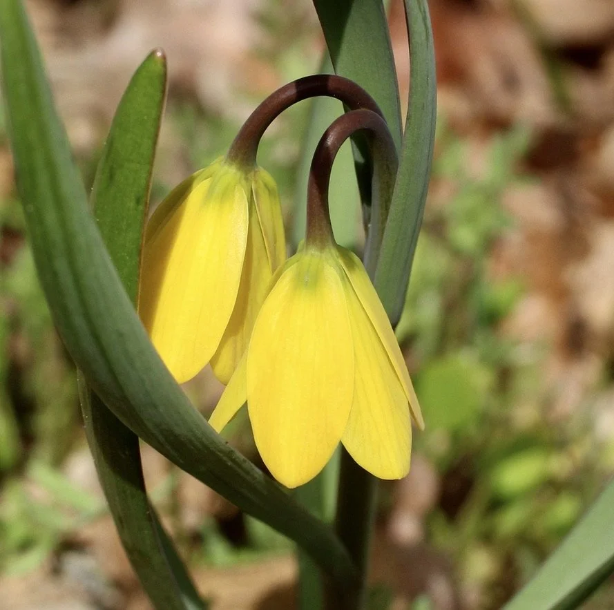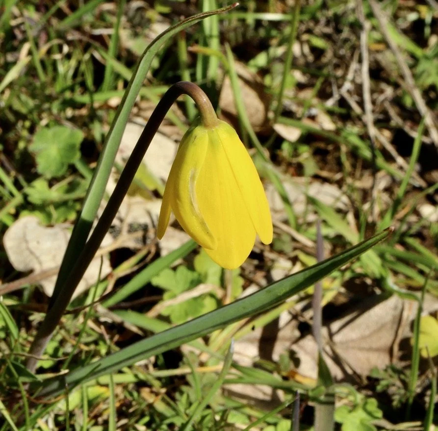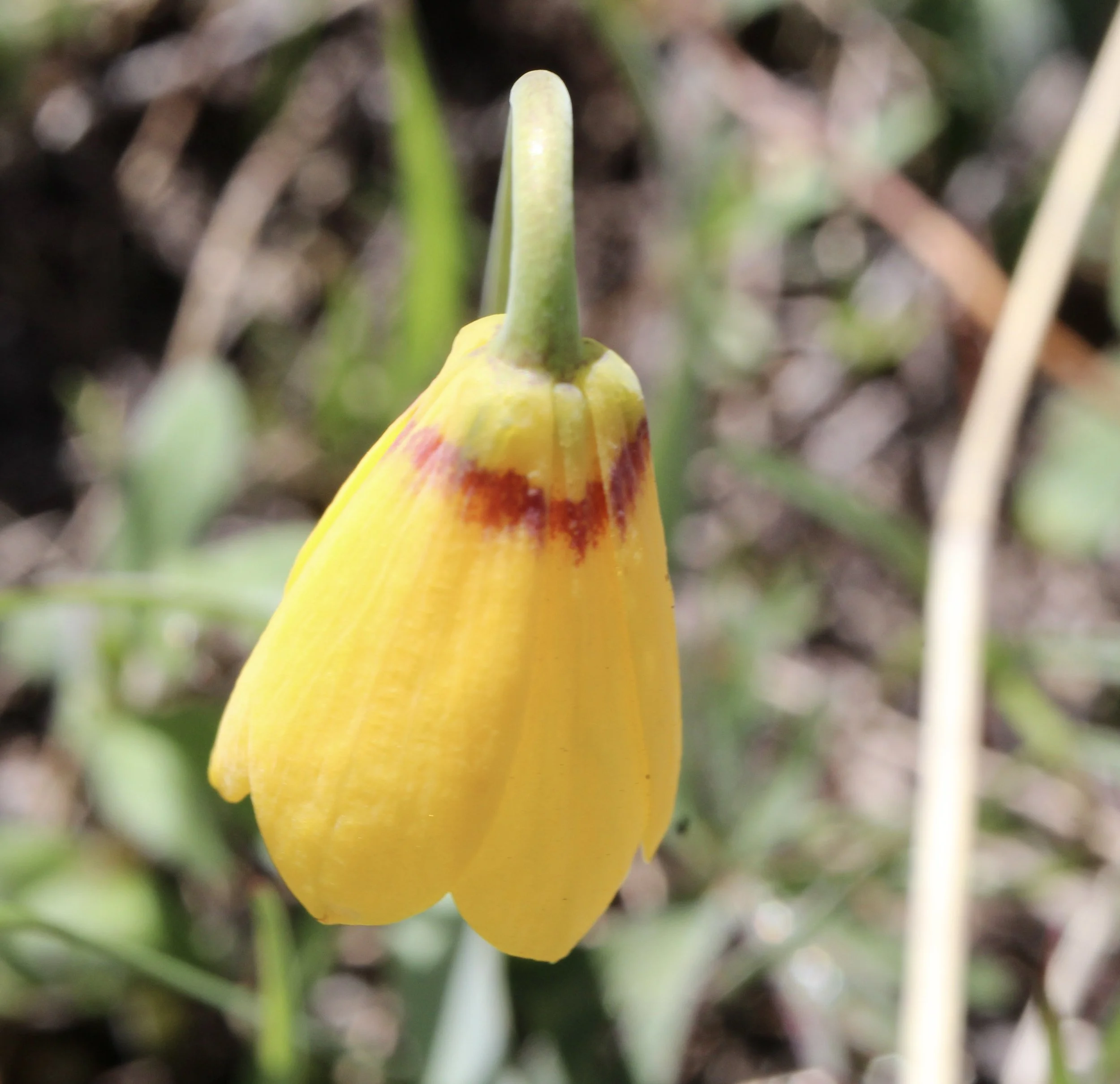 One of the earliest wildflowers to pop out of the ground, the Yellow Bell is a brilliant splash of color in the hills and meadows east of the Cascades. Usually there is only one or two flowers per stalk. The flower head hangs down, and as it ages it turns to dark red.