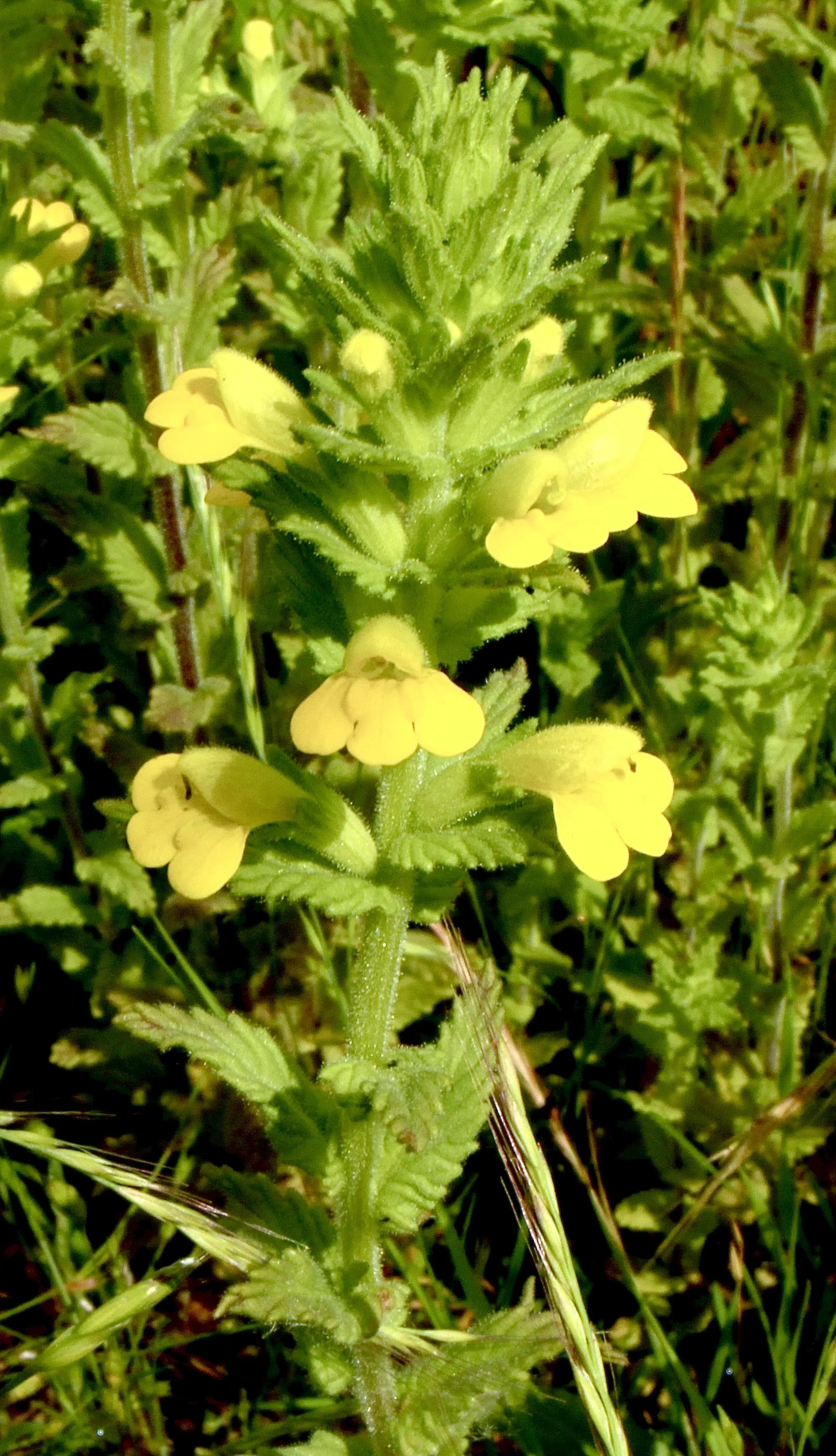 Yellow Parentucellia is a non-native wildflower that seems to like the environment here in the Pacific Northwest. It lives on the west side of the Cascades. The stem and leaves are hairy and seem sticky to the touch. This plant grows all around the world. It’s bright yellow flowers have five lips; the two on the top are shorter than the three lower lips. The petals also have hairs.
